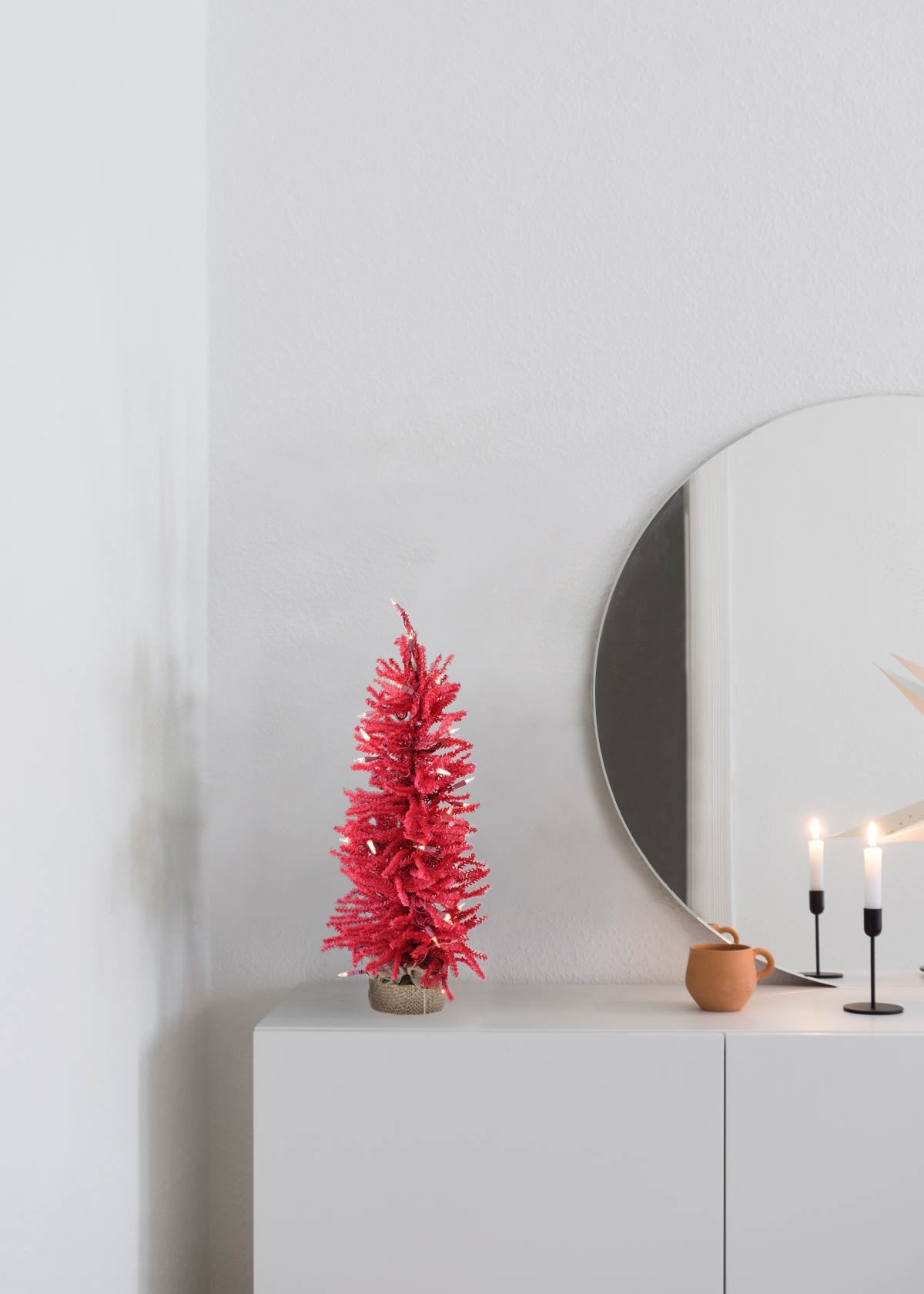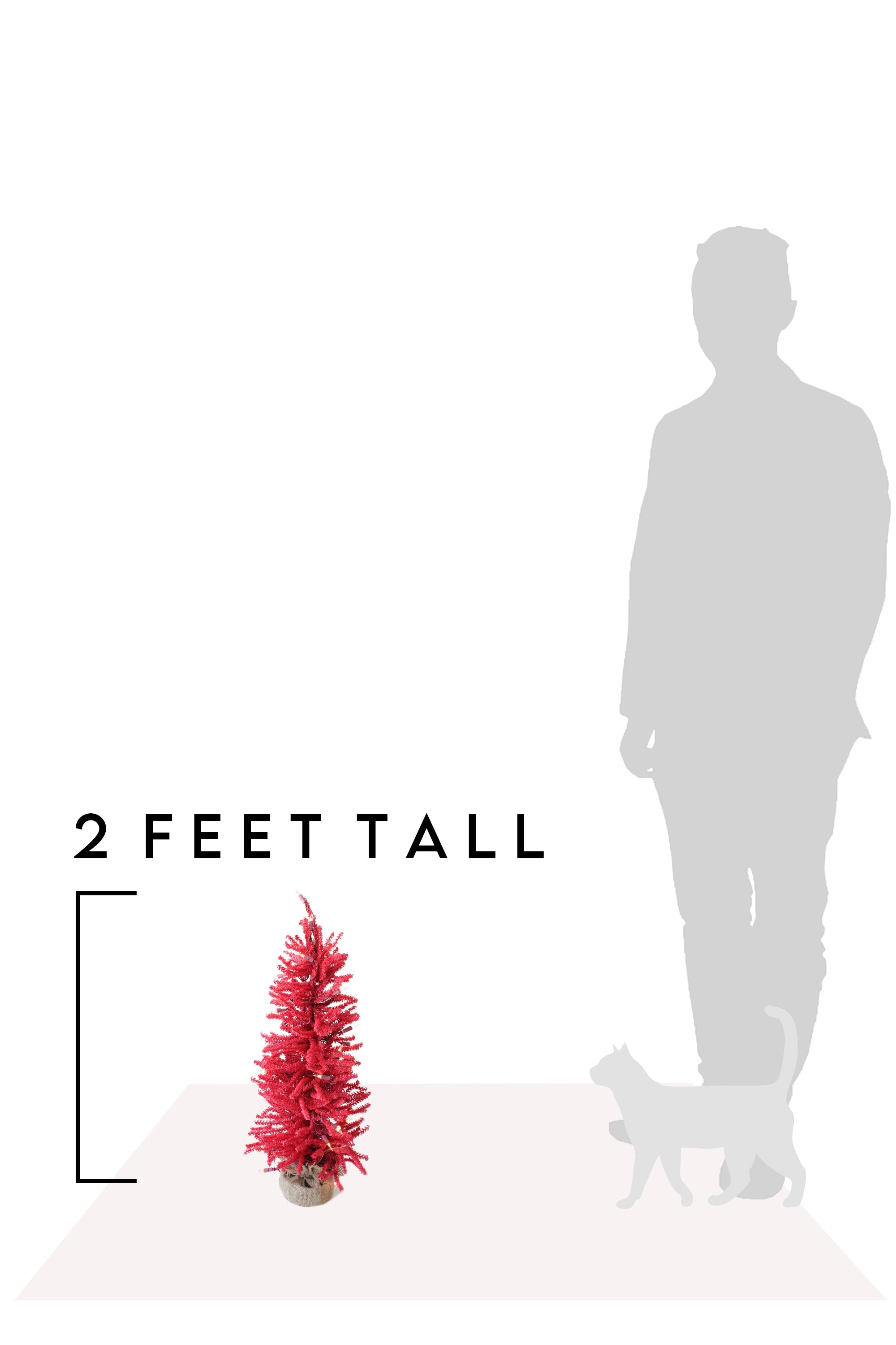 2' Pre-Lit Red Burlap Base Christmas Tree