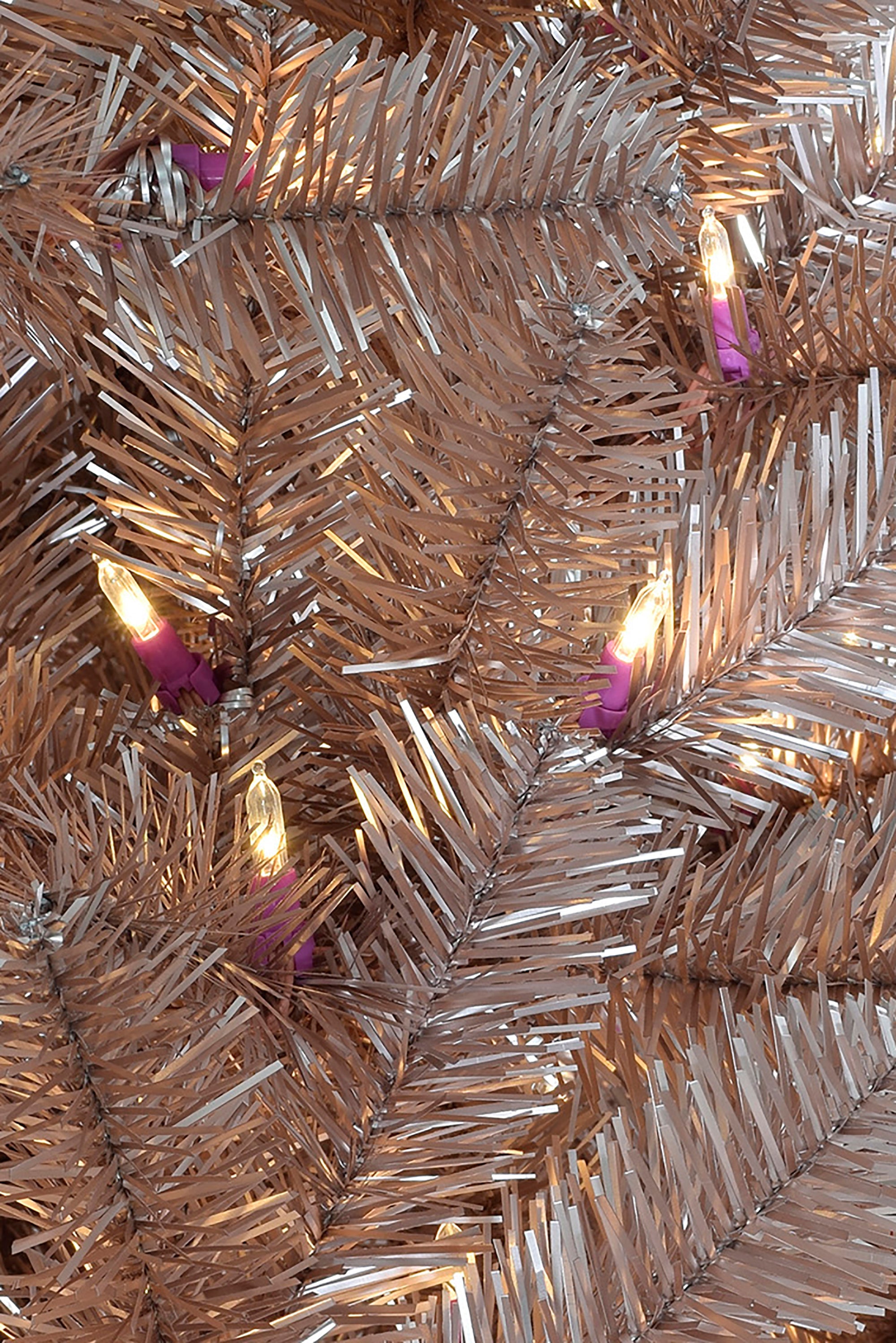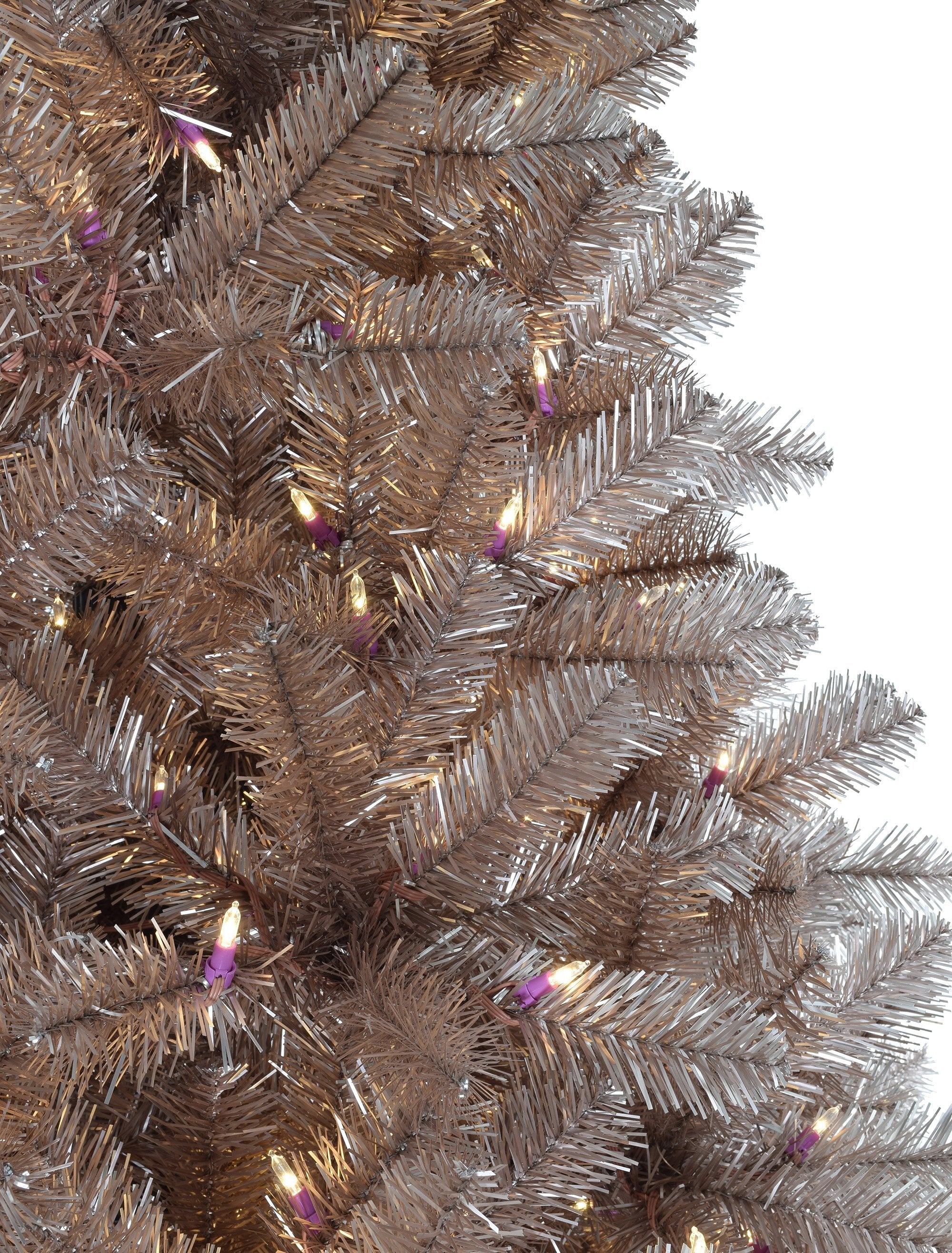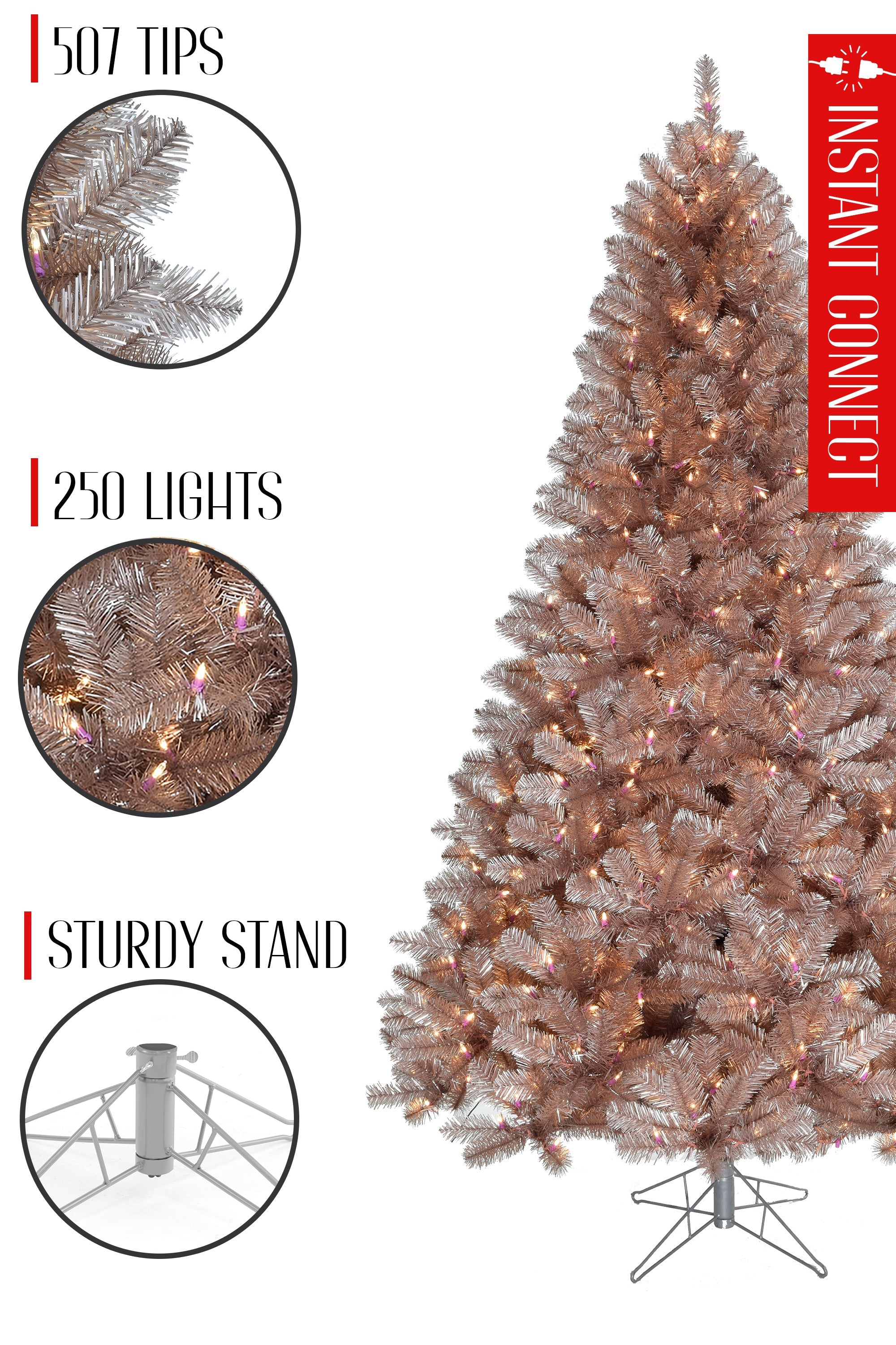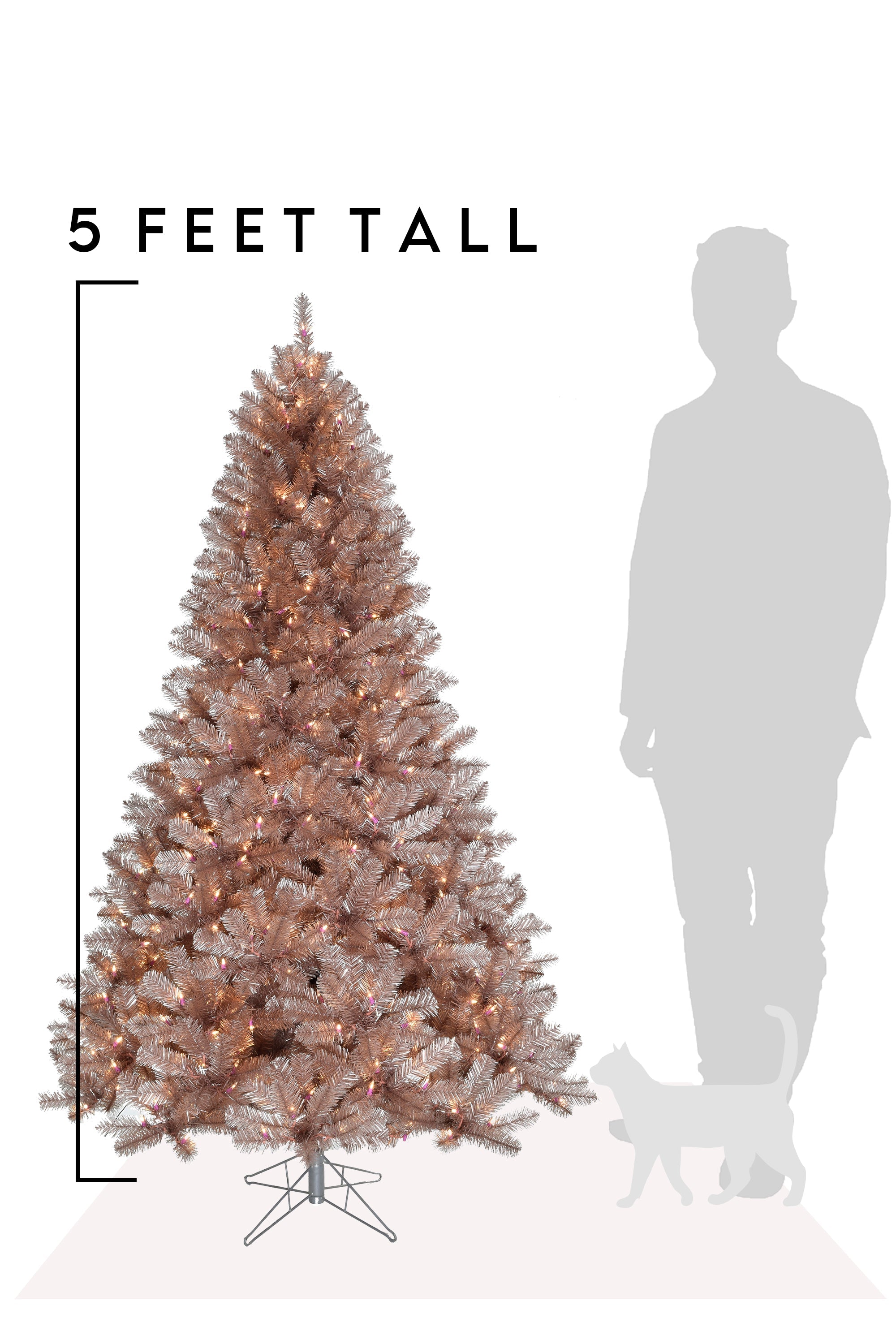 5' Pre-lit Multifunction Rose Gold Oregon Fir Tinsel Tree with Metal Stand and Instant Connect