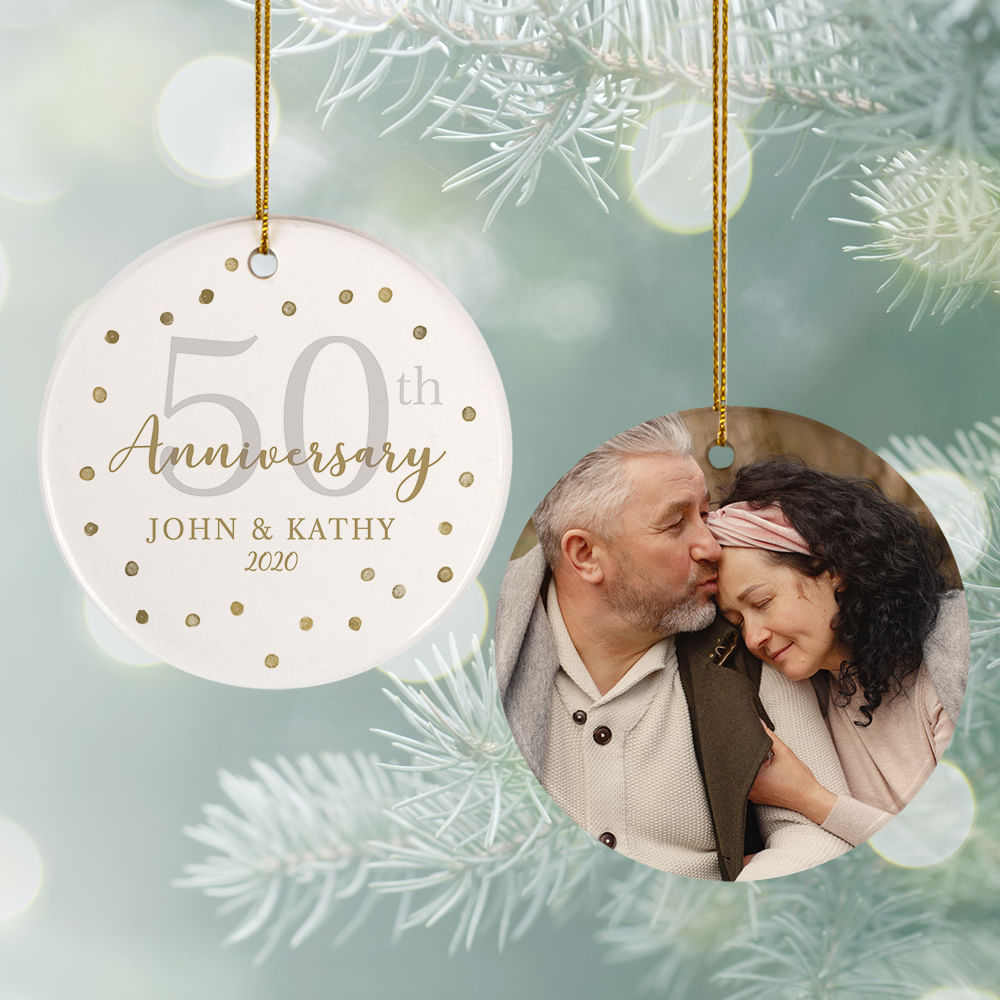 50th Anniversary Personalized Ceramic Round Photo Ornament