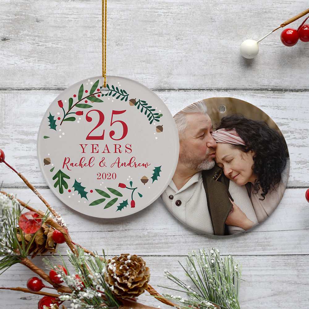 for Anniversary Wreath Personalized Ceramic Round Ornament
