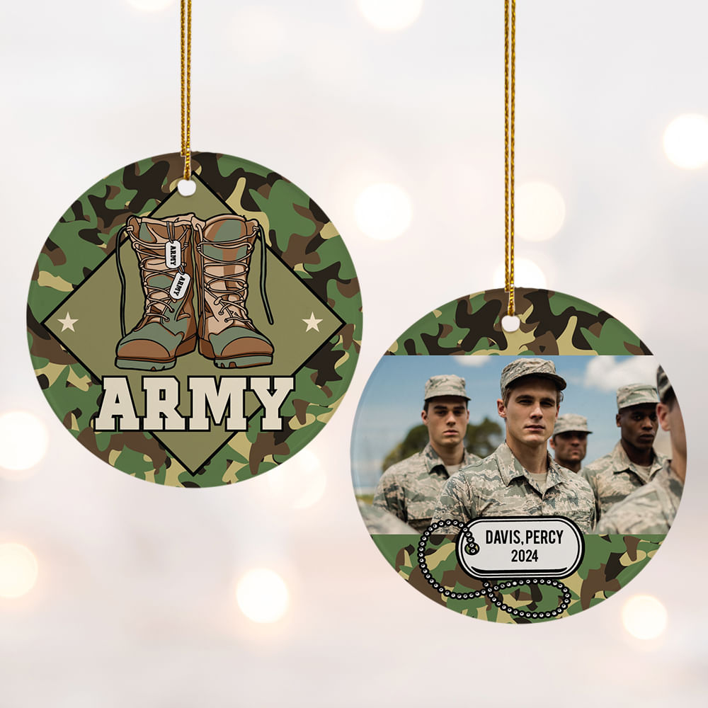 Army Personalized Ceramic Round Ornament