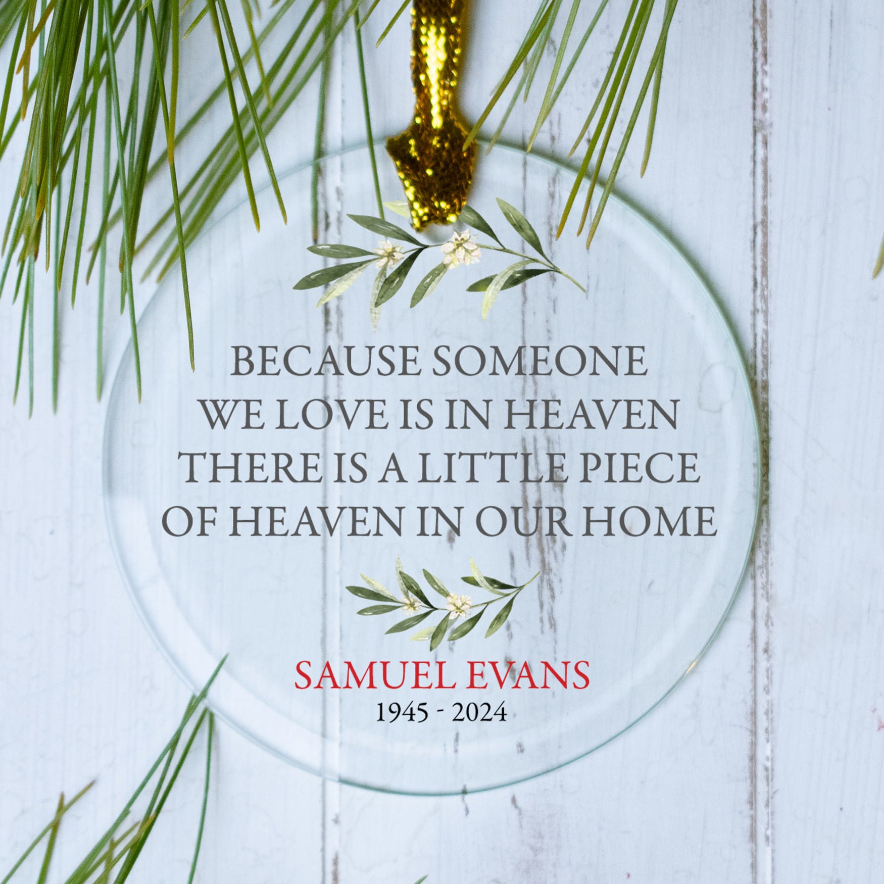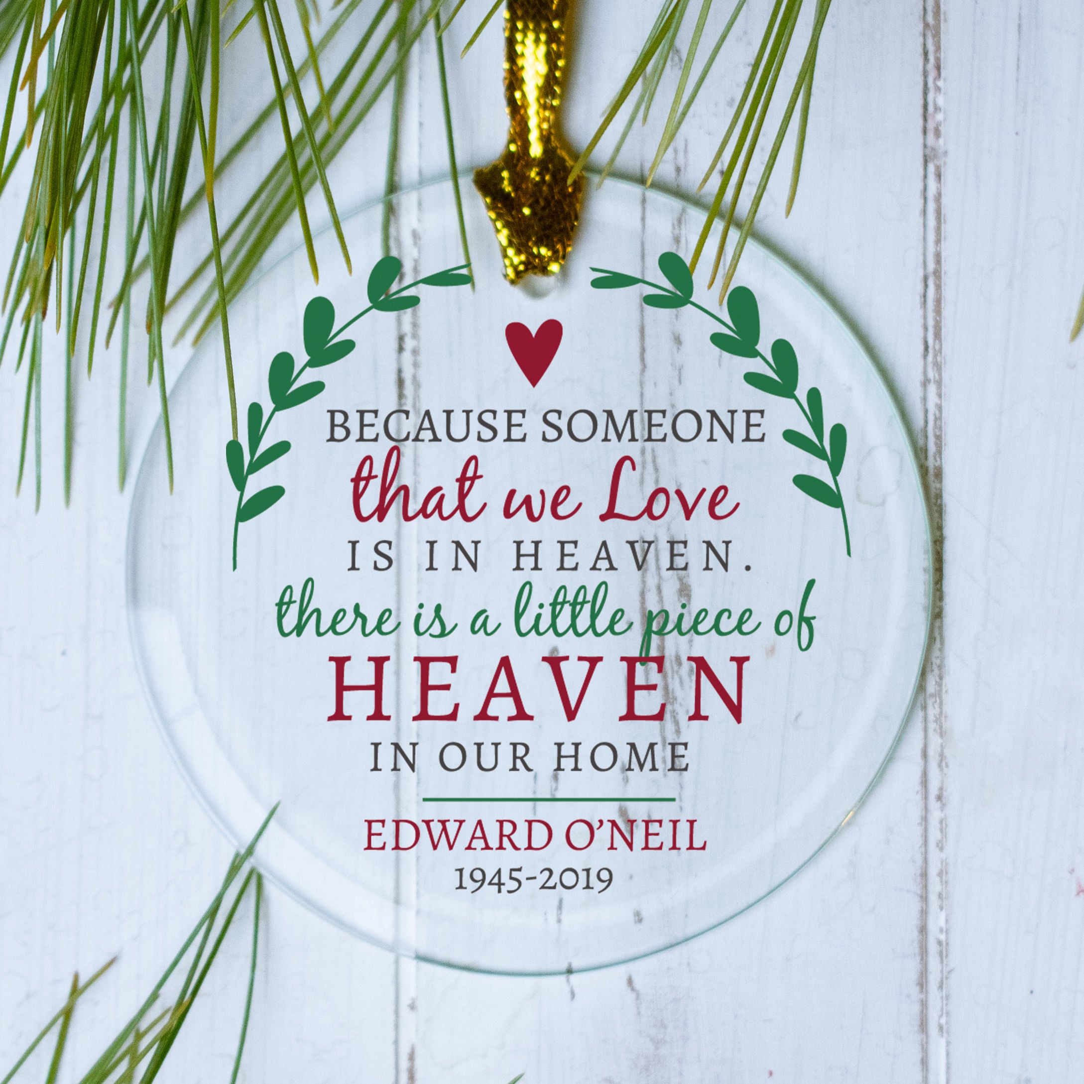 Because Someone We Love Memorial Personalized Glass Ornament