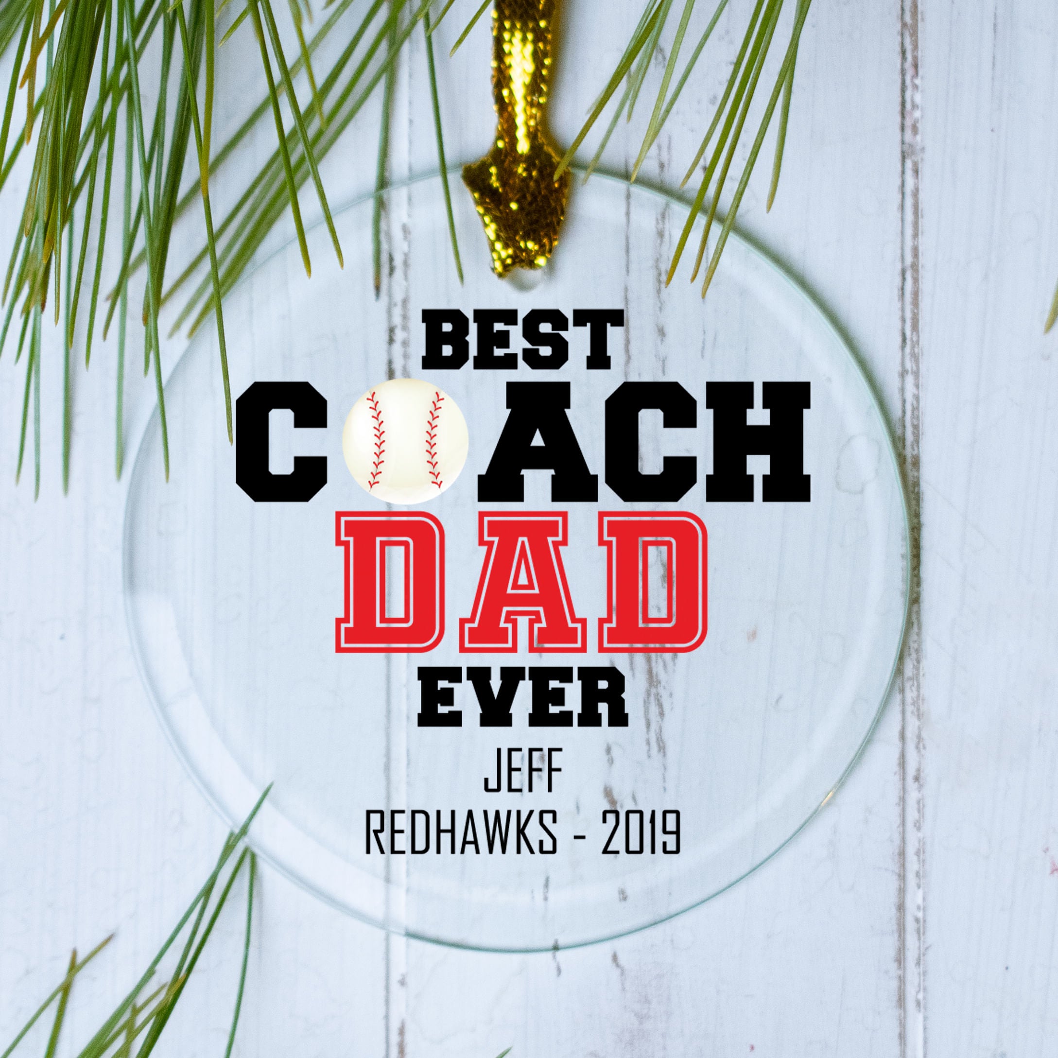 Best Coach Dad Ever Baseball Personalized Glass Ornament