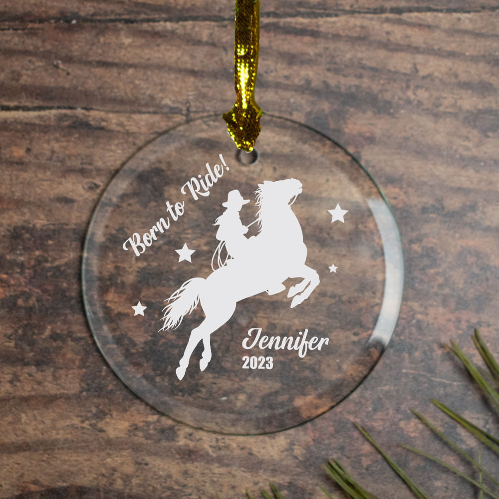 Born To Ride Horseback Riding Personalized Glass Ornament