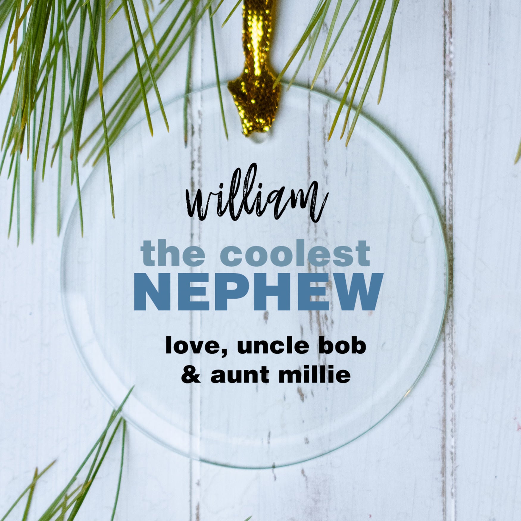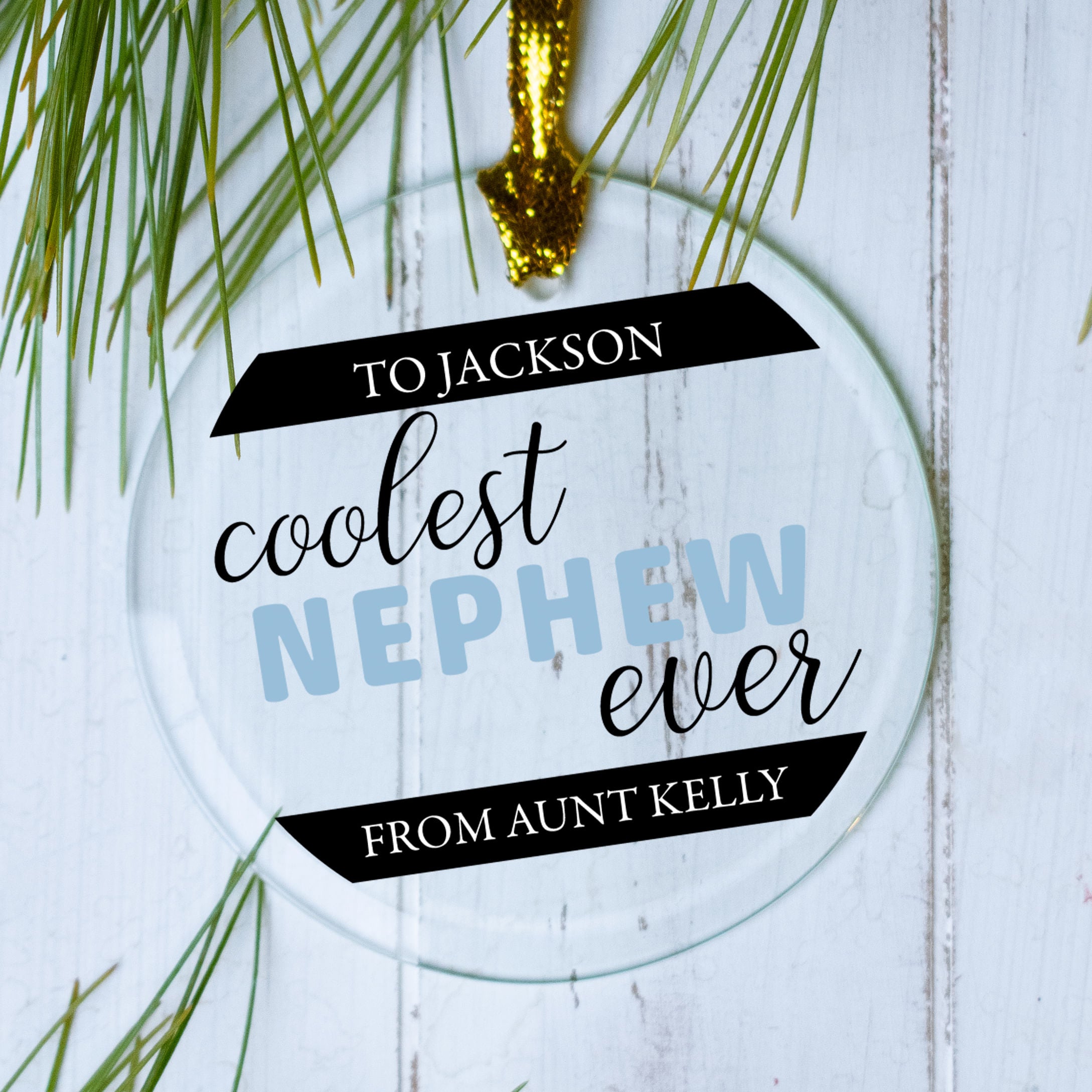 Coolest Nephew Ever Personalized Glass Round Ornament