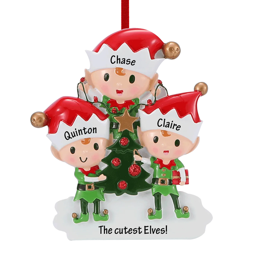 Elves Family Personalized Ornament - 3, 4, 5 Family Members