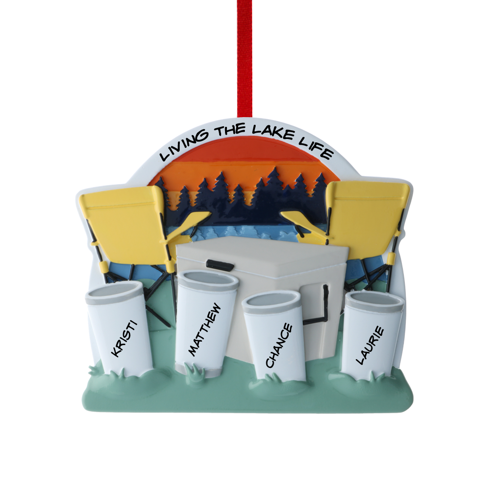Family With Cooler At The Lake Personalized Ornament - 4, 5, 6 Family Members