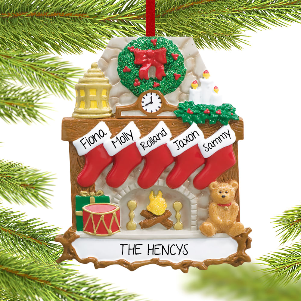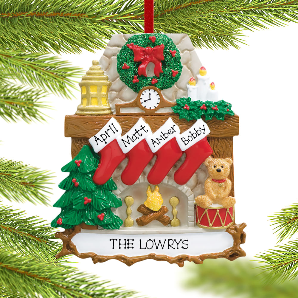 Fireplace Stockings Personalized Ornament - 3, 4, 5, 6 Family Members
