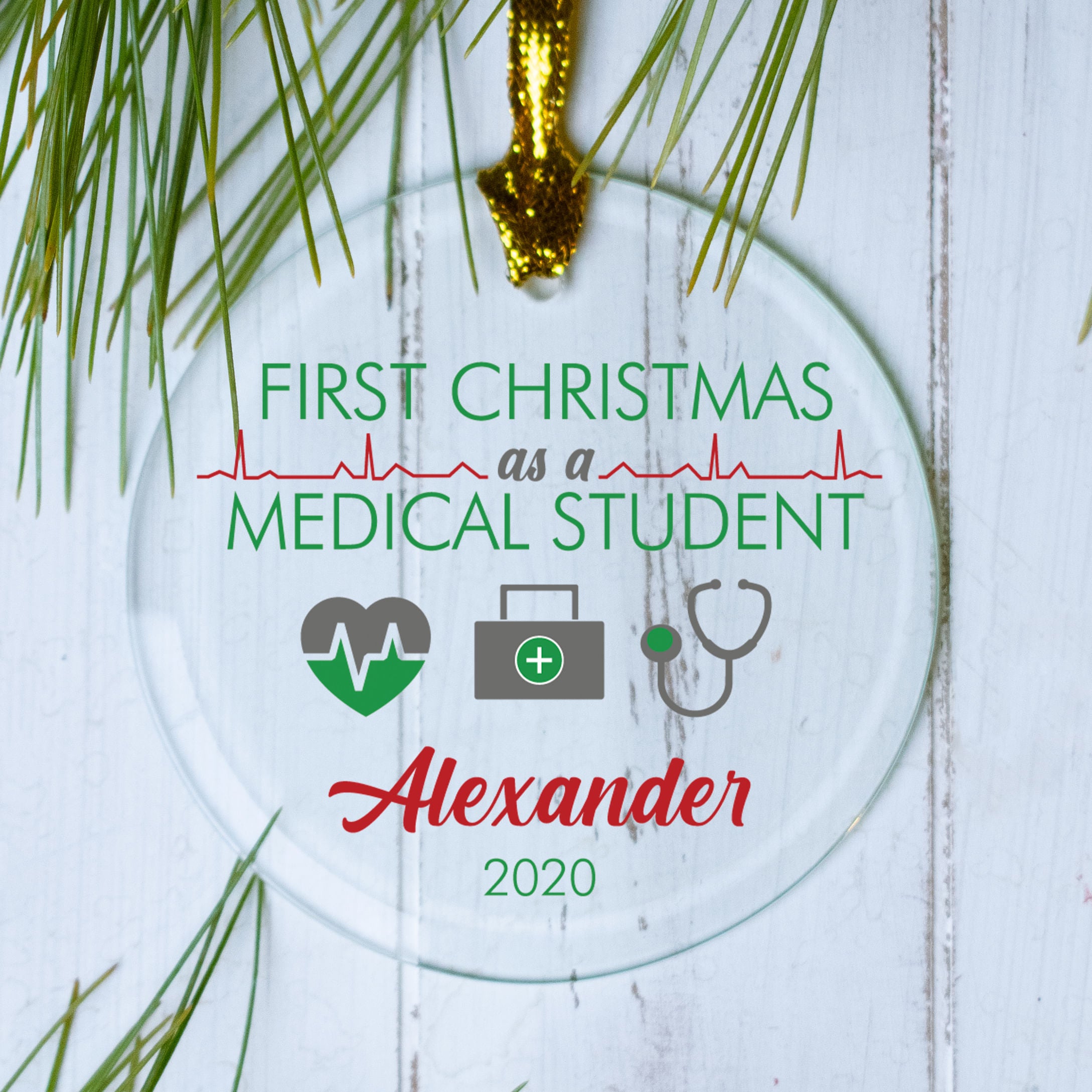 for First Christmas As A Medical Student Personalized Glass Ornament