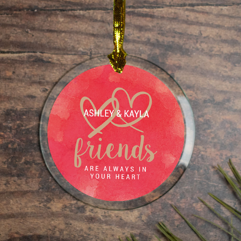 for Friends Are Always In Your Heart Personalized Glass Ornament