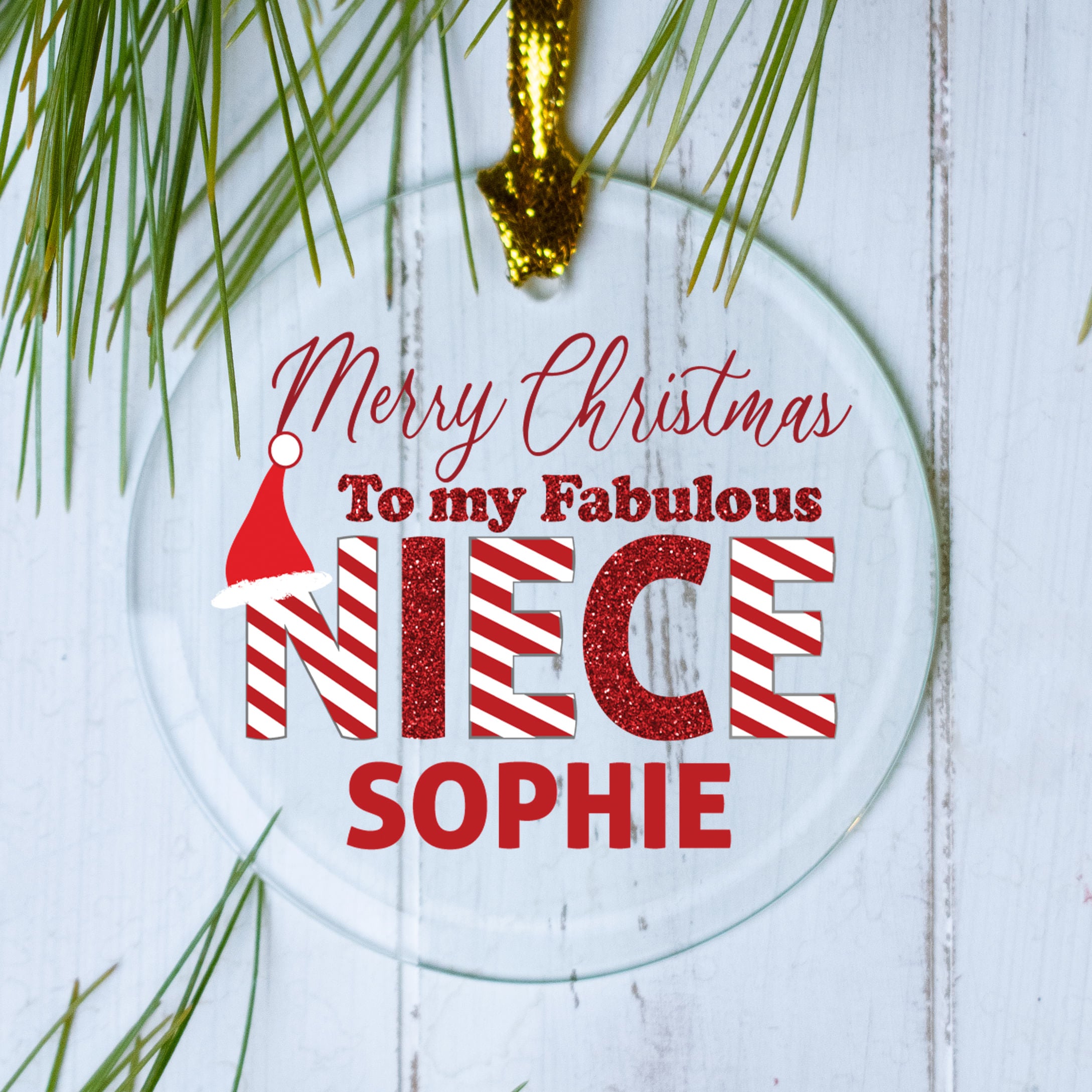 for Merry Christmas To My Fabulous Niece Personalized Glass Ornament