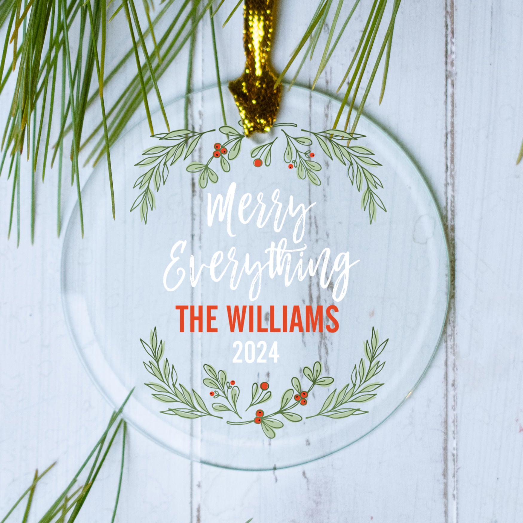 for Merry Everything Christmas Family Personalized Glass Ornament