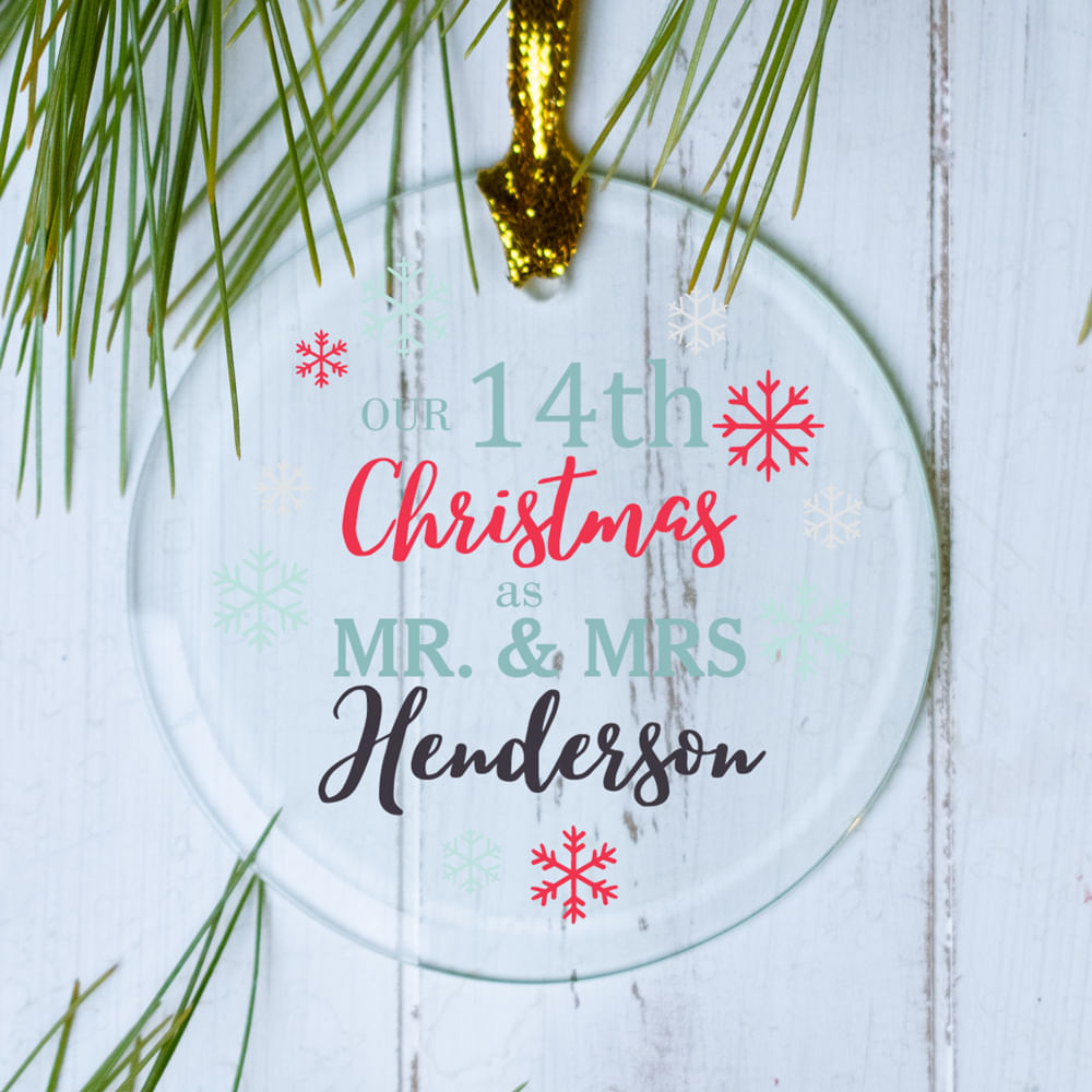 Mr & Mrs Christmas Snowflake Anniversary Personalized Glass Ornament