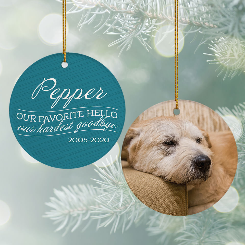 for Our Favorite Hello, Hardest Goodbye Dog Personalized Ceramic Round Ornament