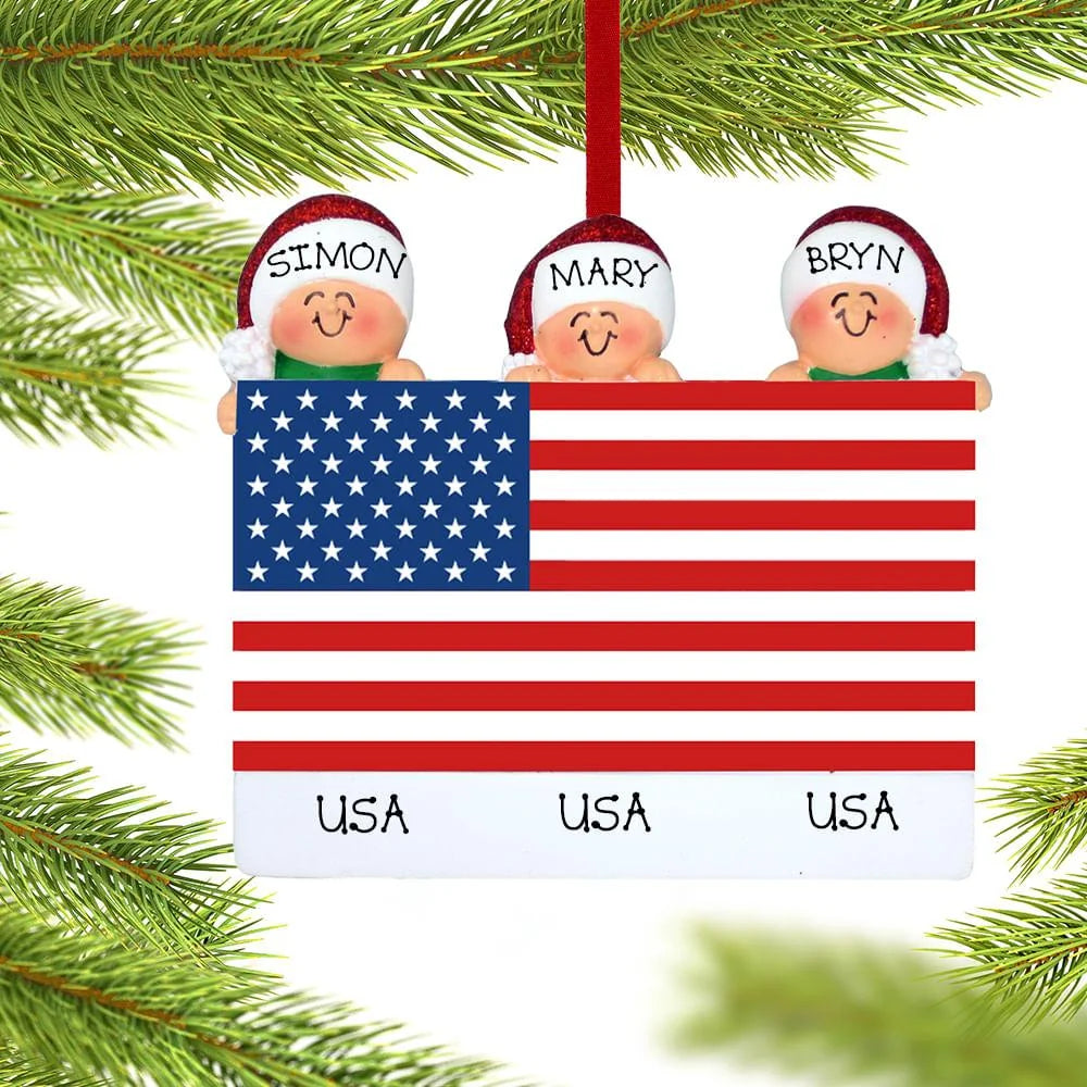 Patriotic Family Personalized Ornament - 2, 3, 4, 5 Family Members