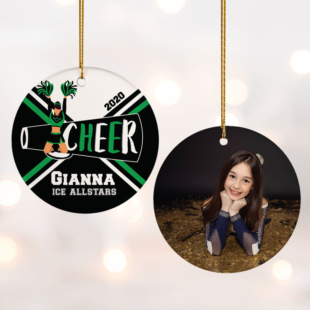 for Cheer With Girl & Pom Pom Personalized Photo Ceramic Round Ornament