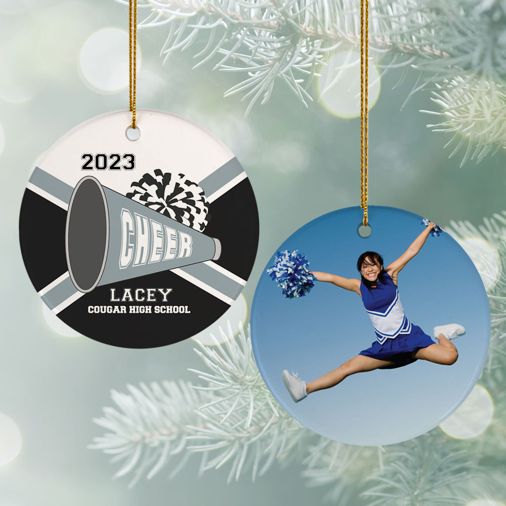 Cheer With Pom Pom Personalized Photo Ceramic Round Ornament