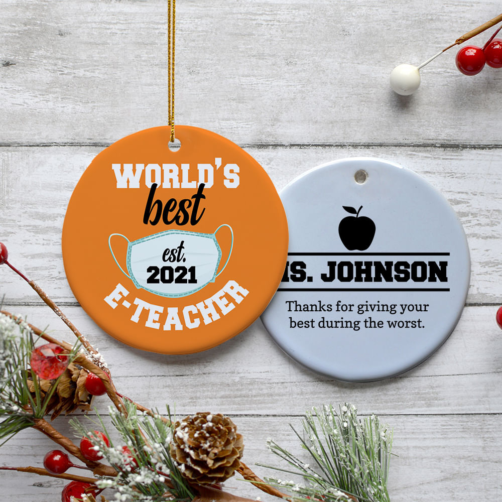 for E-Teacher Appreciation Personalized Ceramic Round Ornament