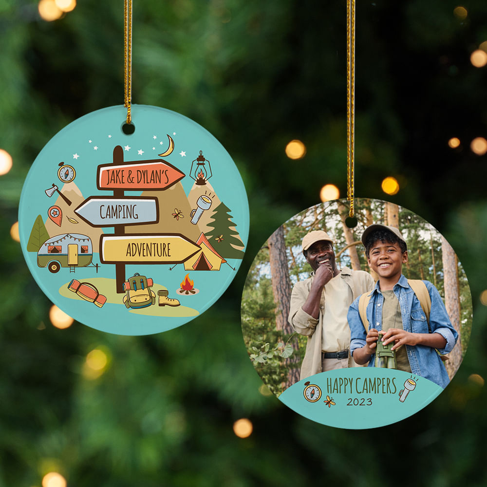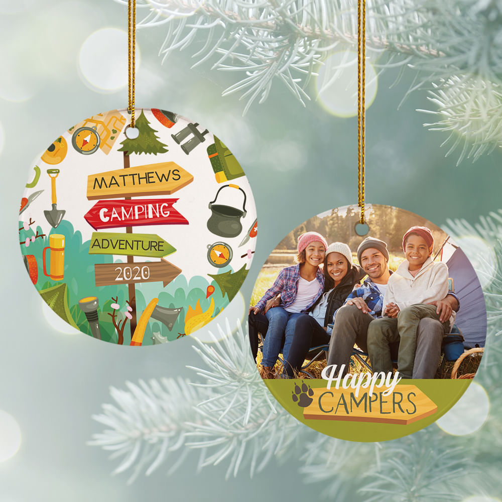 Happy Campers Personalized Photo Ceramic Round Ornament