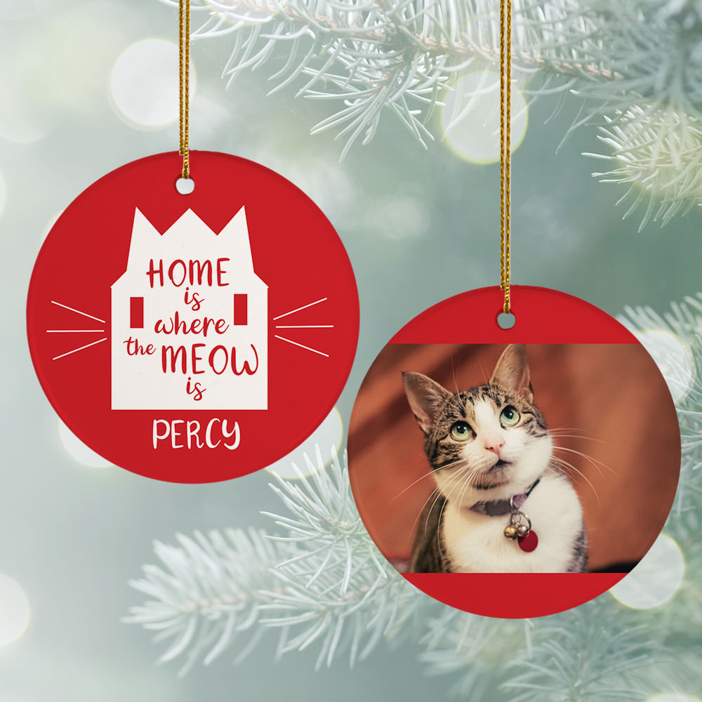Home is Where the Meow is Christmas Personalized Ceramic Round Ornament