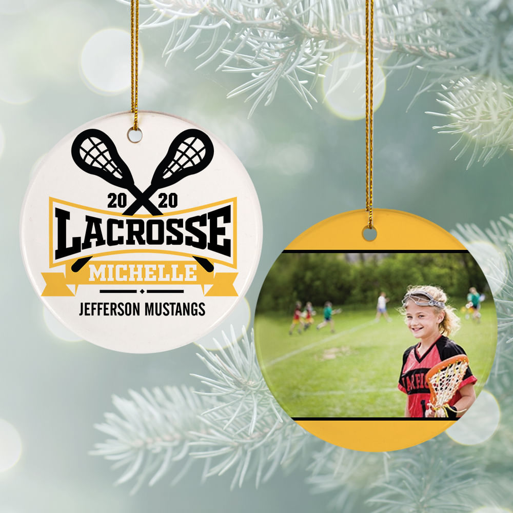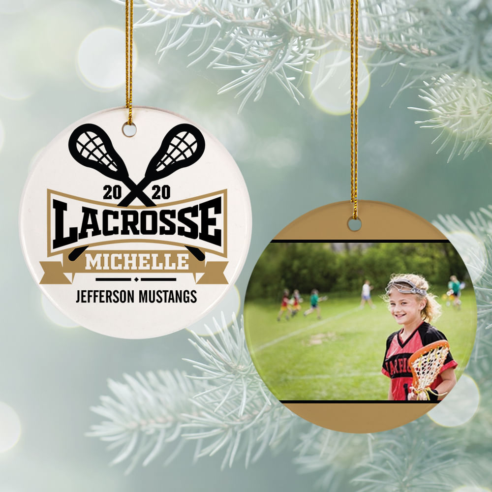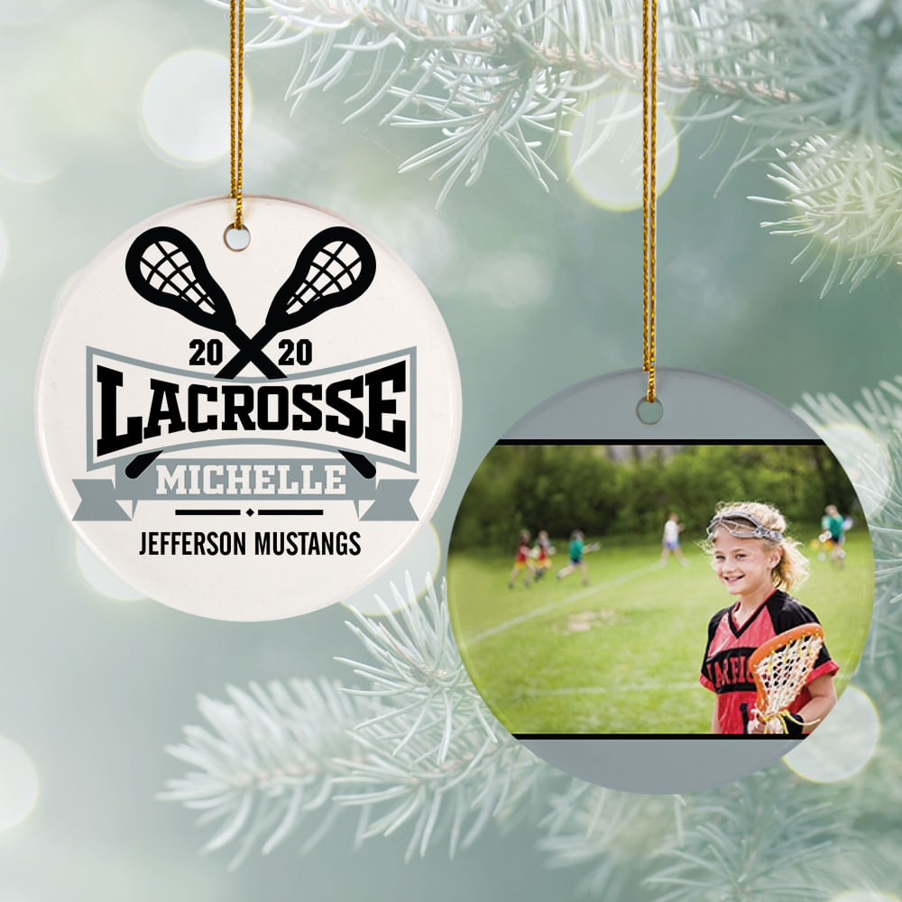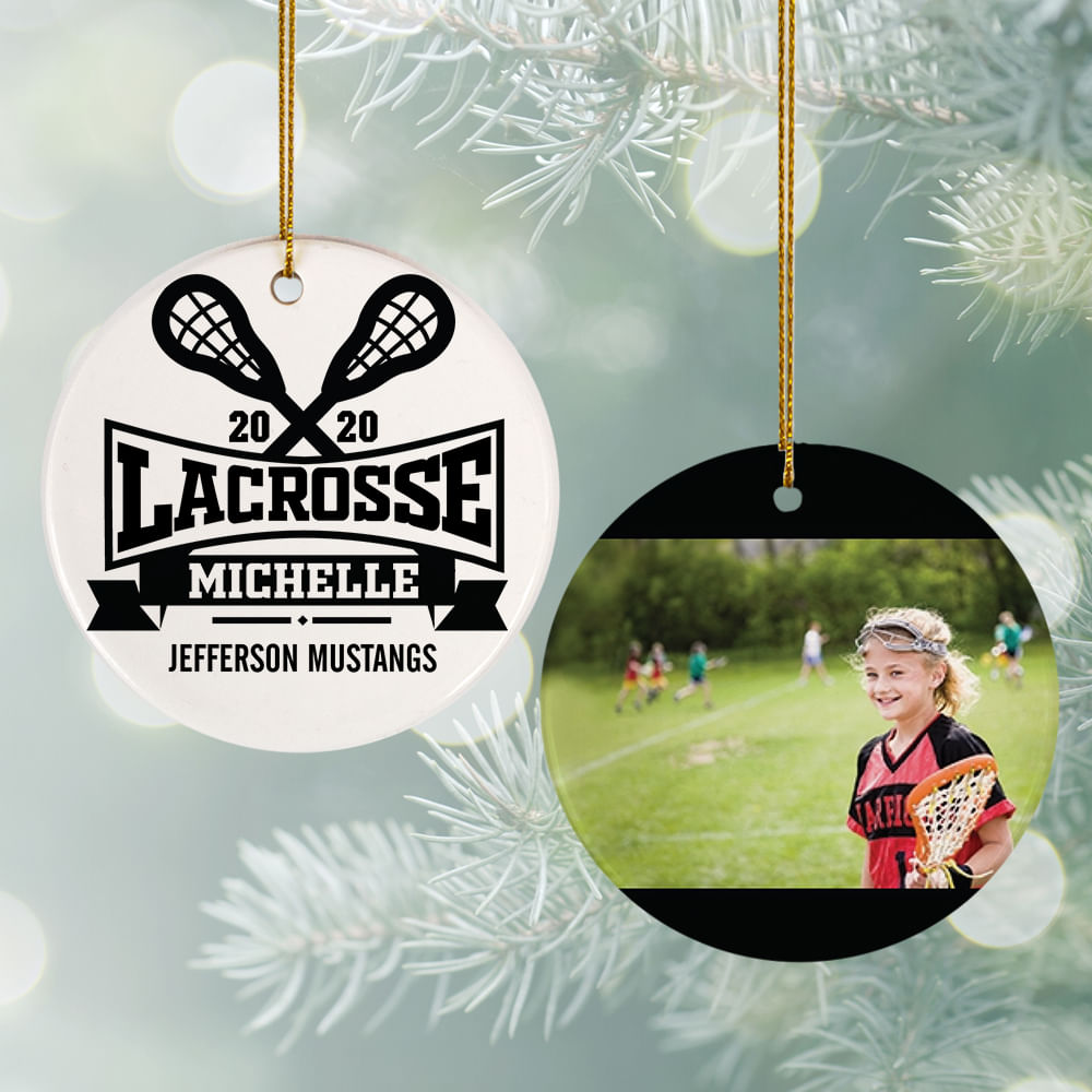 Lacrosse Photo Personalized Ceramic Round Ornament