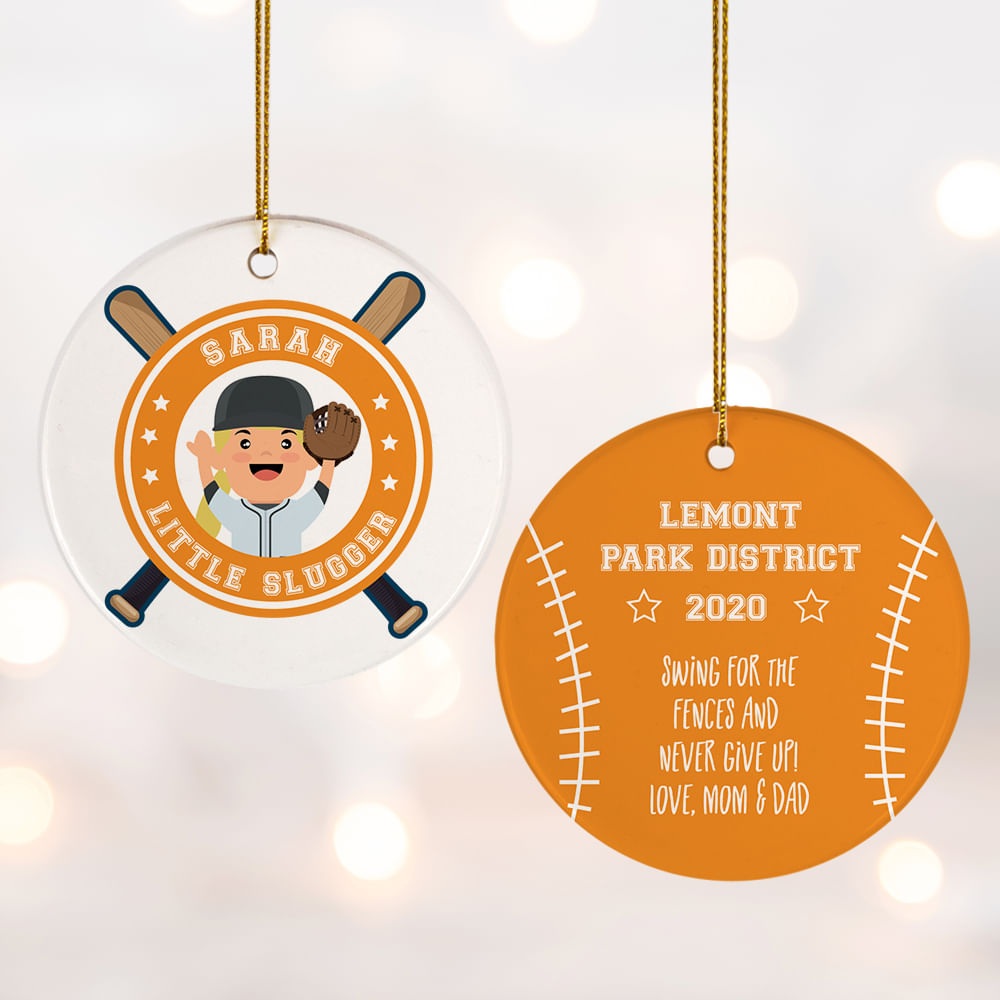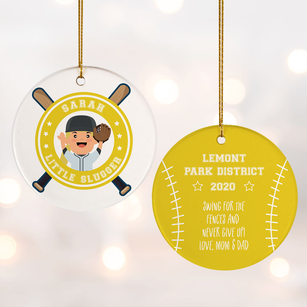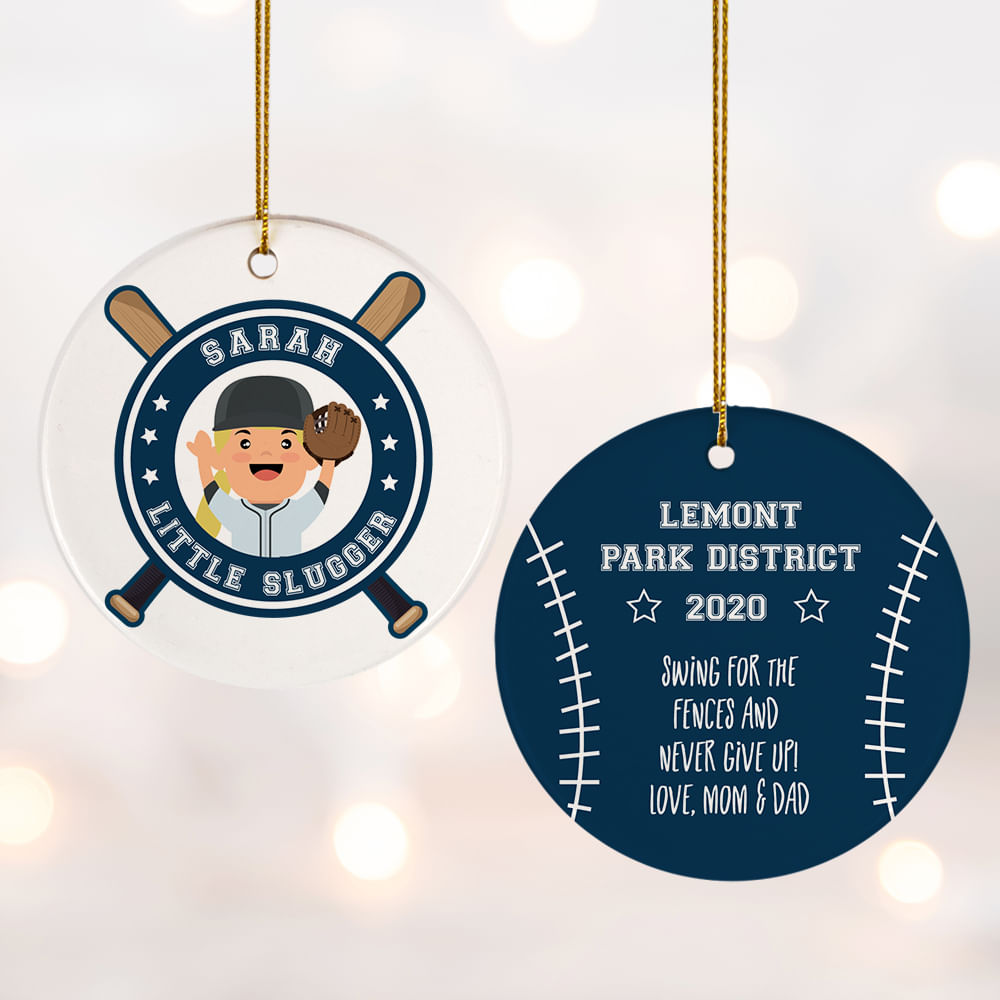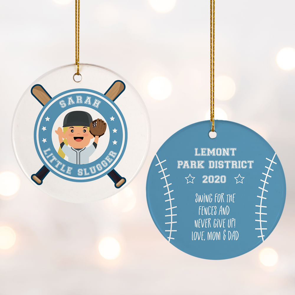 for Little Slugger Blond With Mitt Personalized Cermaic Round Ornament