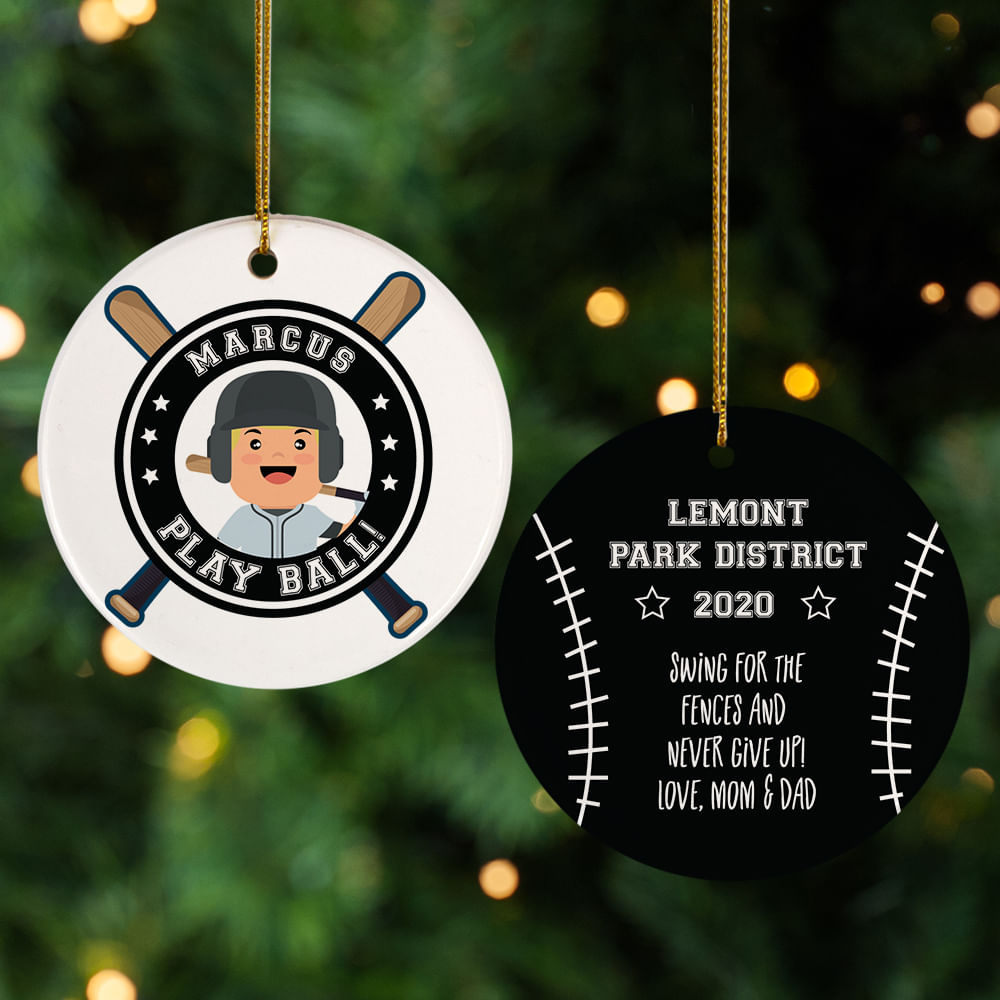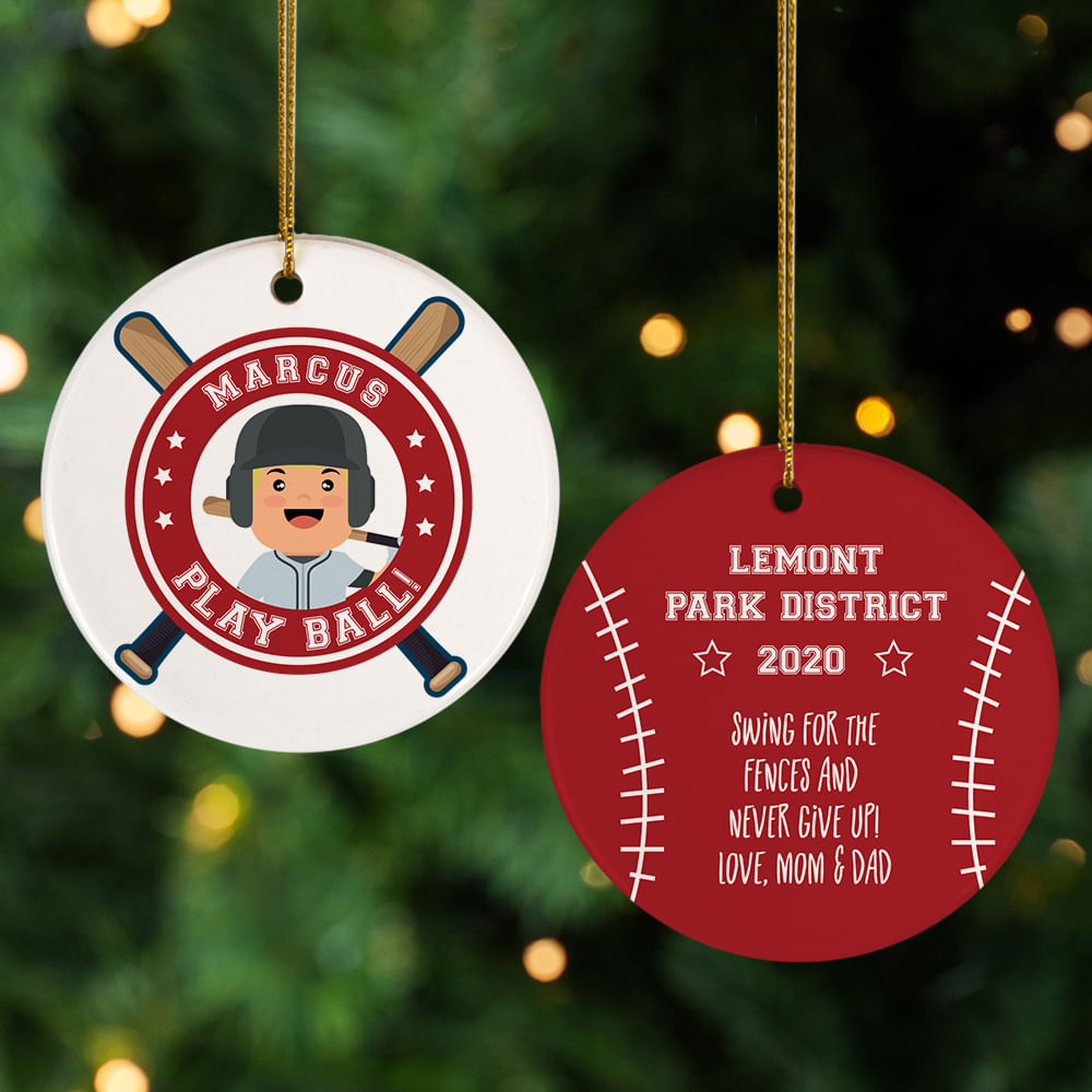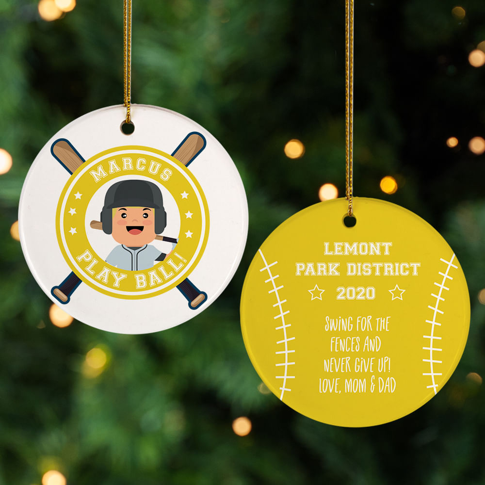 for Little Slugger Blond With Bat Personalized Cermaic Round Ornament