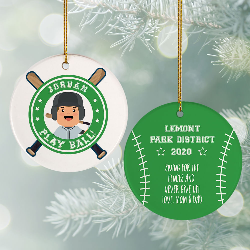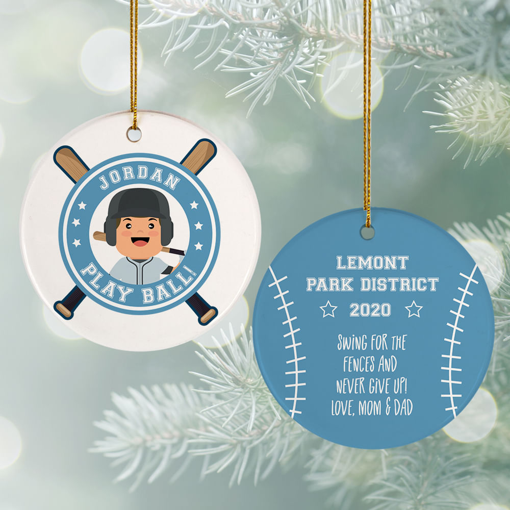for Little Slugger Blond With Bat Personalized Cermaic Round Ornament