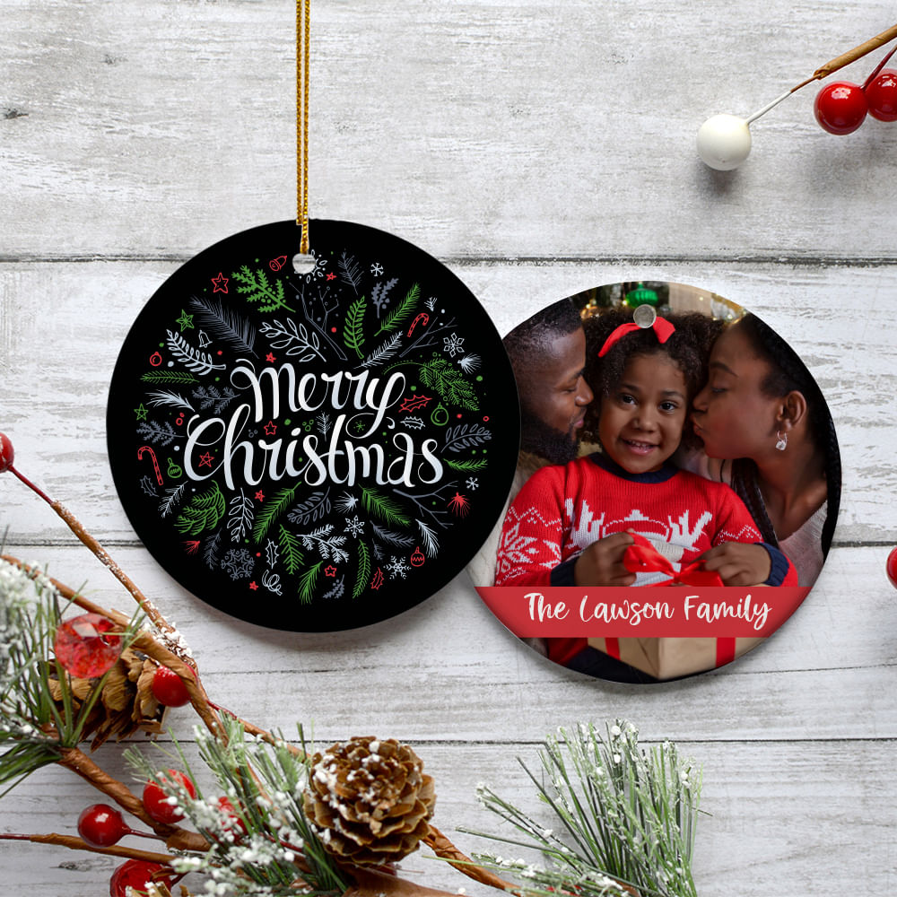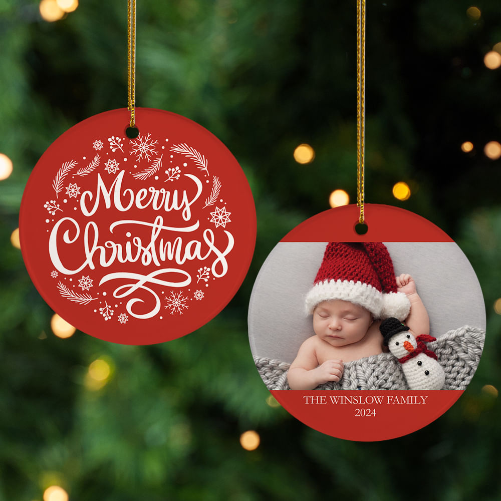 Merry Christmas Family Personalized Photo Ceramic Round Ornament