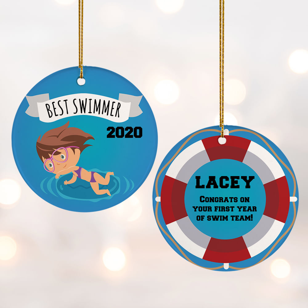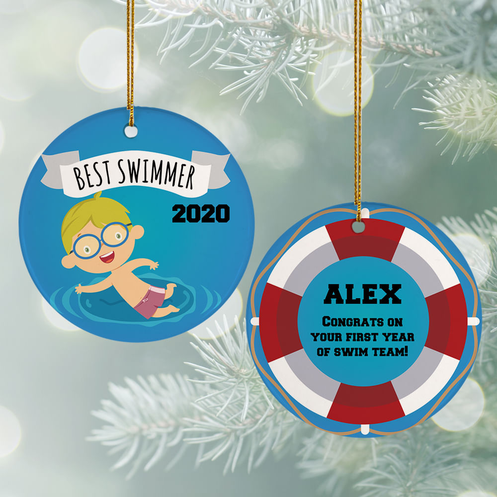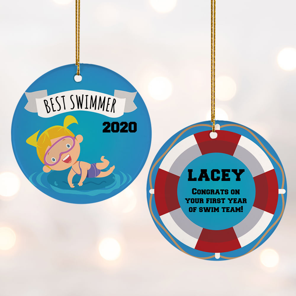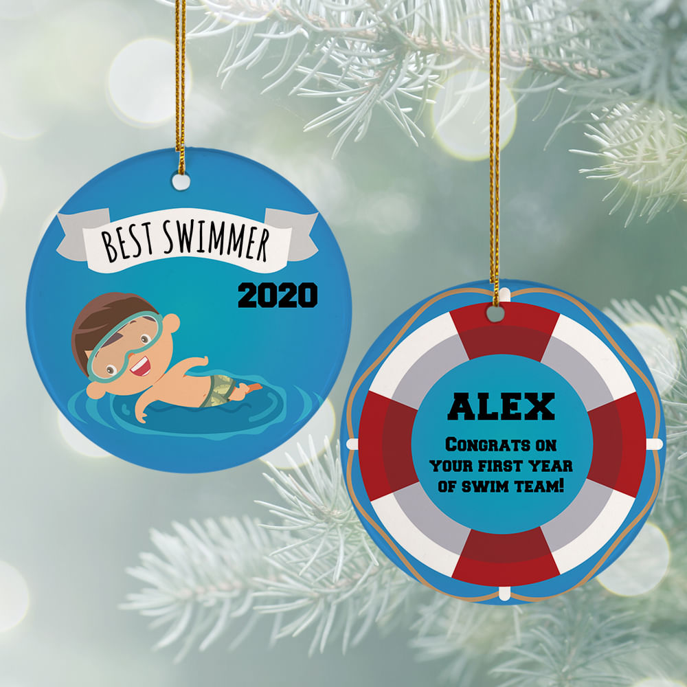 New Swimmer Personalized Personalized Ceramic Round Ornament