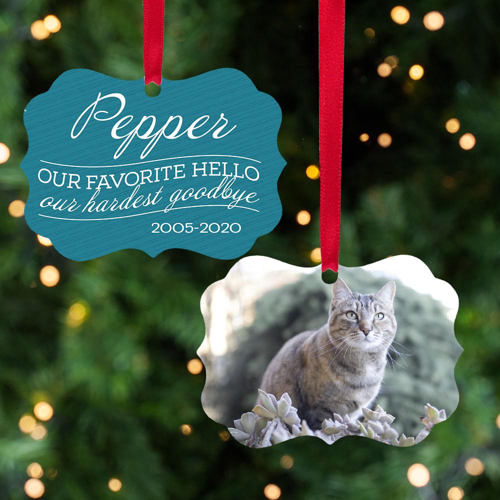 How to Personalize Your Our Favorite Hello, Our Hardest Goodbye Cat Memorial Personalized Metal Ornament