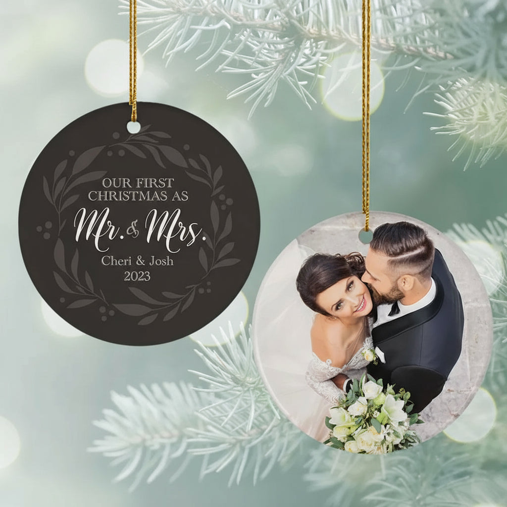 How to Personalize Your Our First as Mr and Mrs Wedding Personalized Ceramic Round Ornament