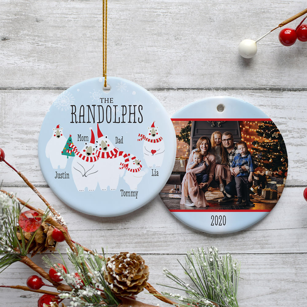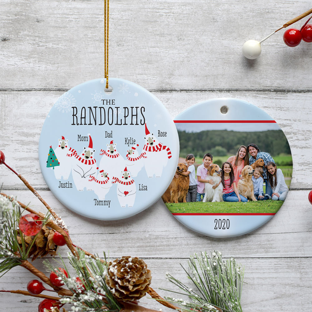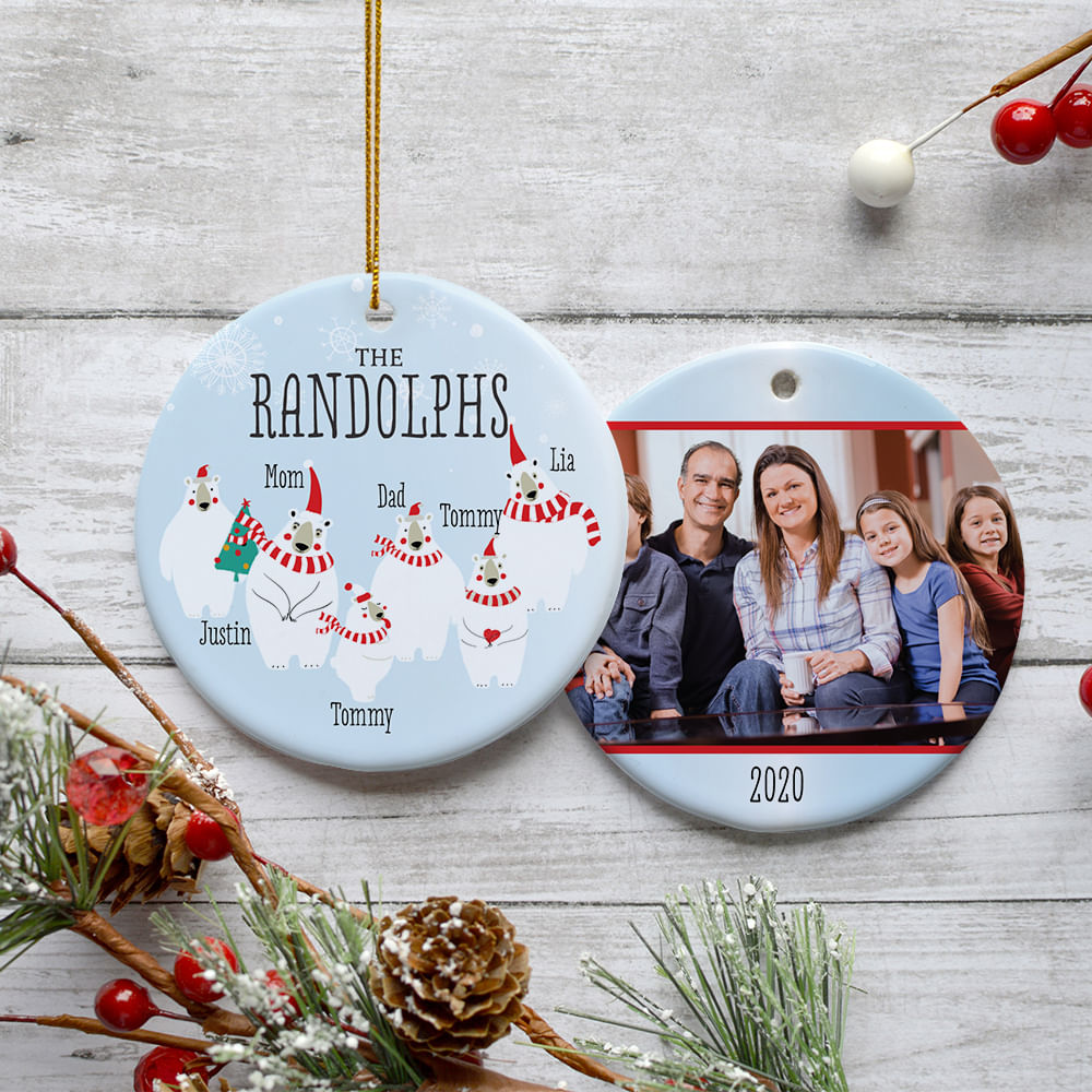 for Polar Bear Family of 3, 4, 5, 6, or 7 Personalized Photo Ceramic Round Ornament