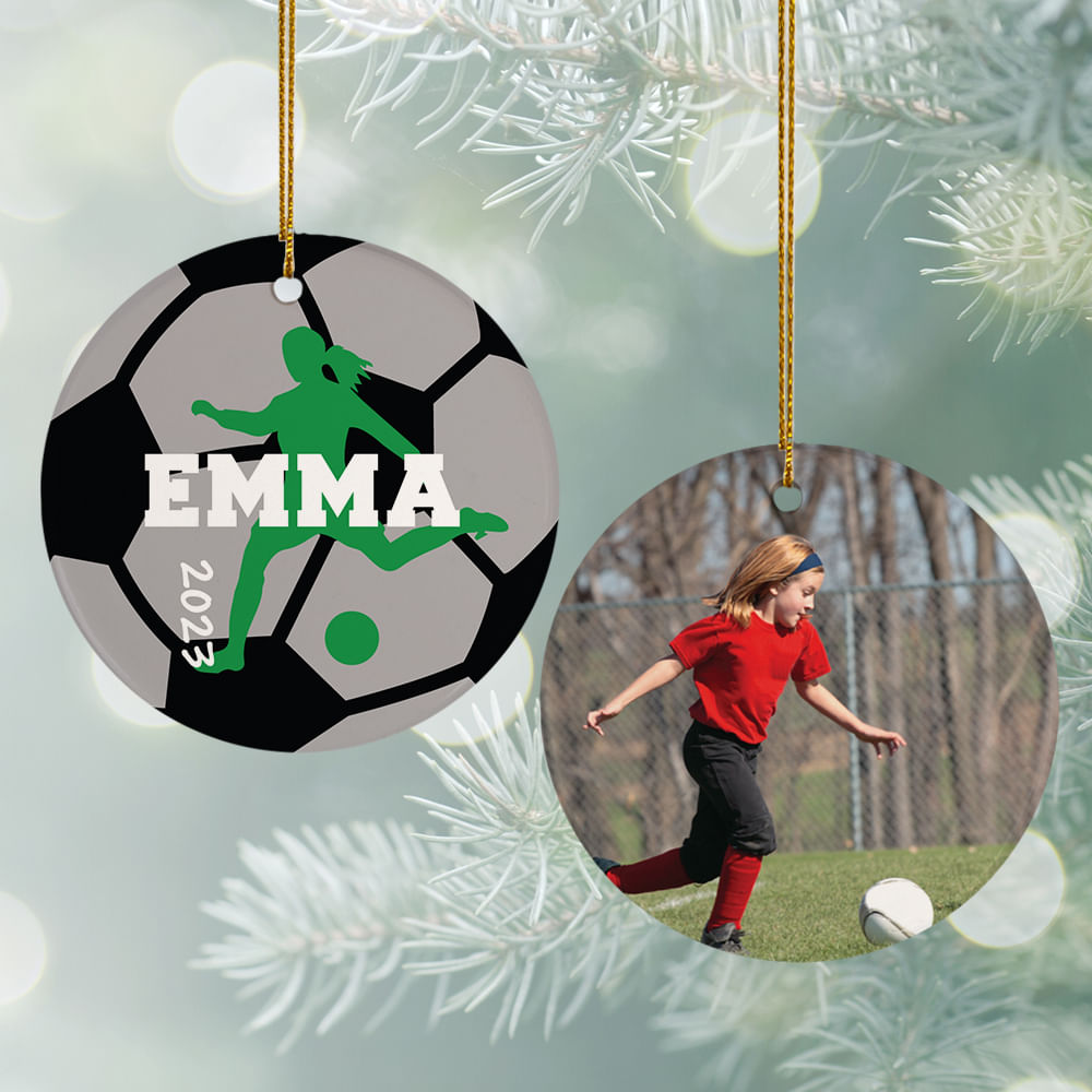 How to Personalize Your Soccer Kicking Girl or Boy Personalized Photo Ceramic Round Ornament