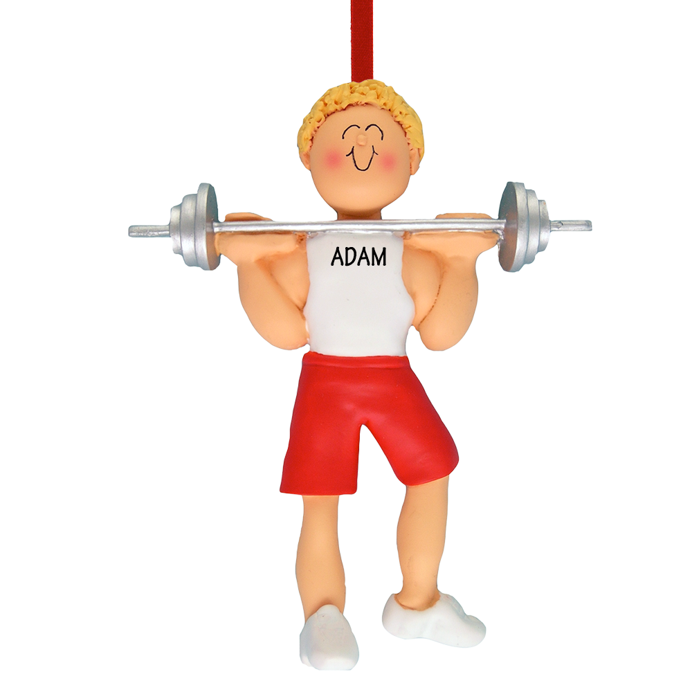 Weightlifter Male With A Barbell Personalized Christmas Ornament
