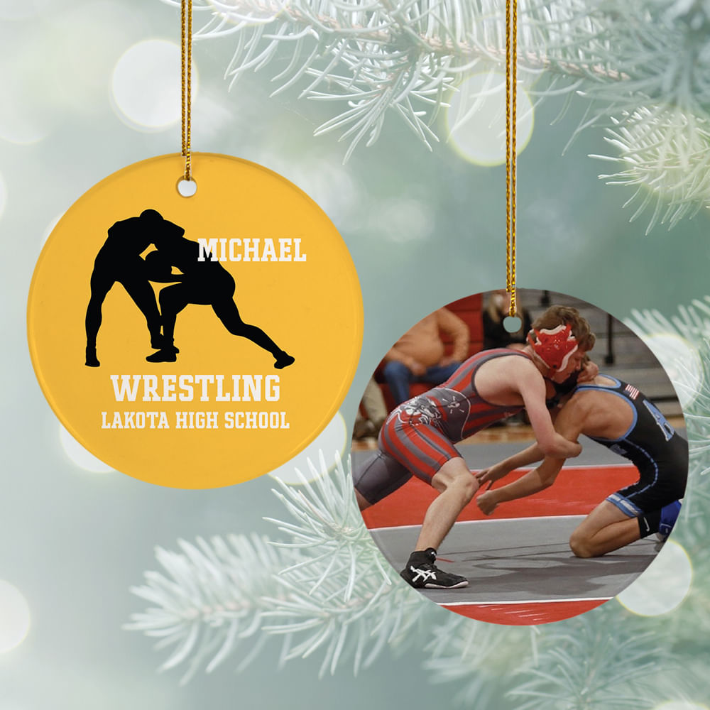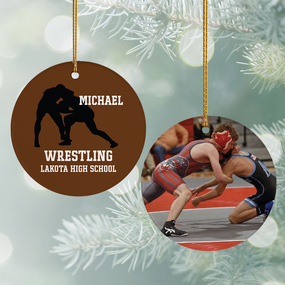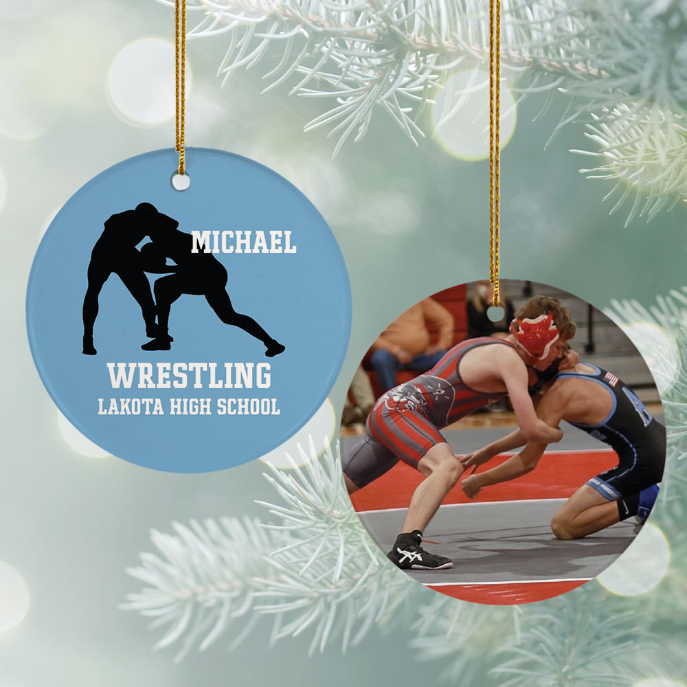 How to Personalize Your Wrestling Team Photo Personalized Ceramic Round Ornament