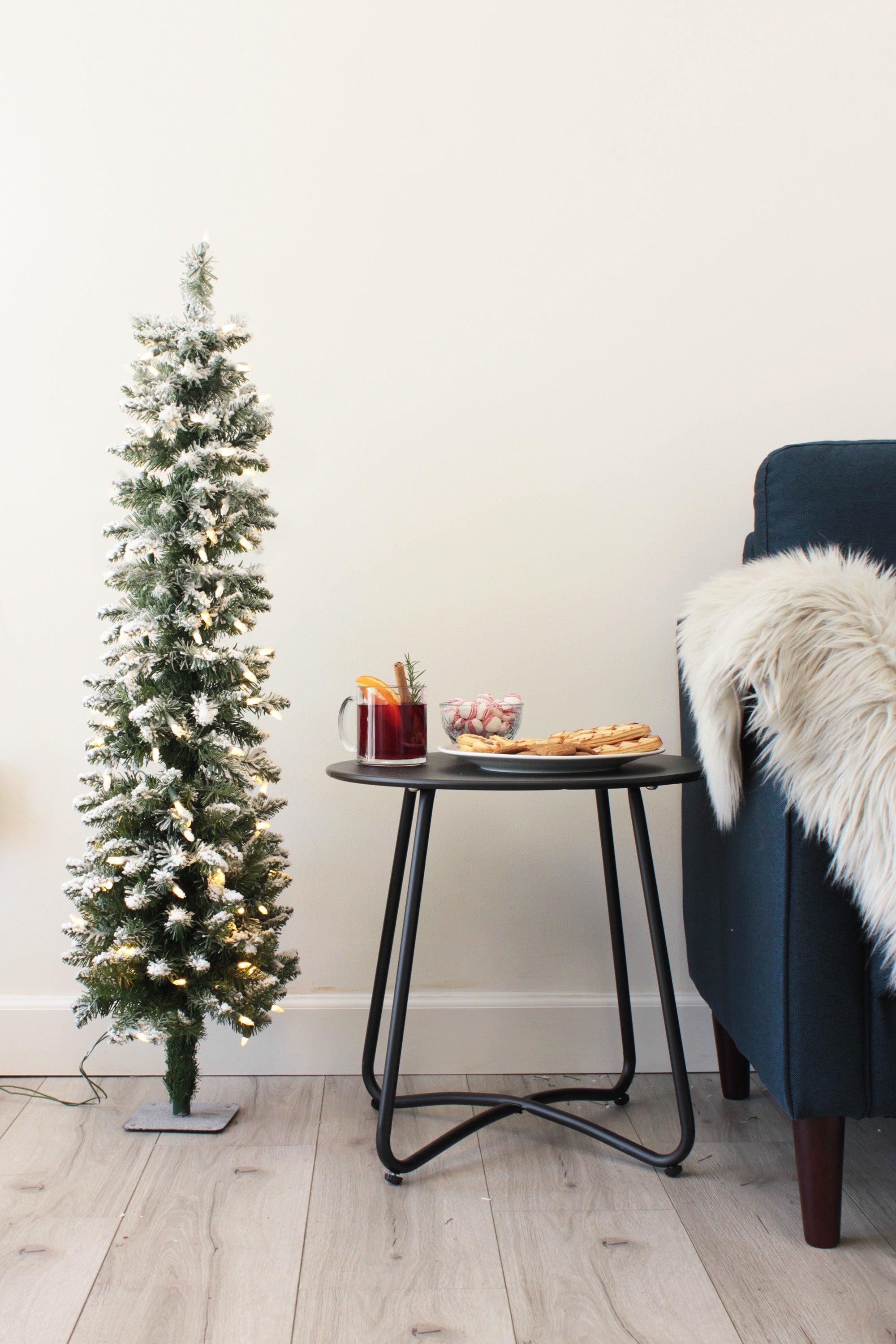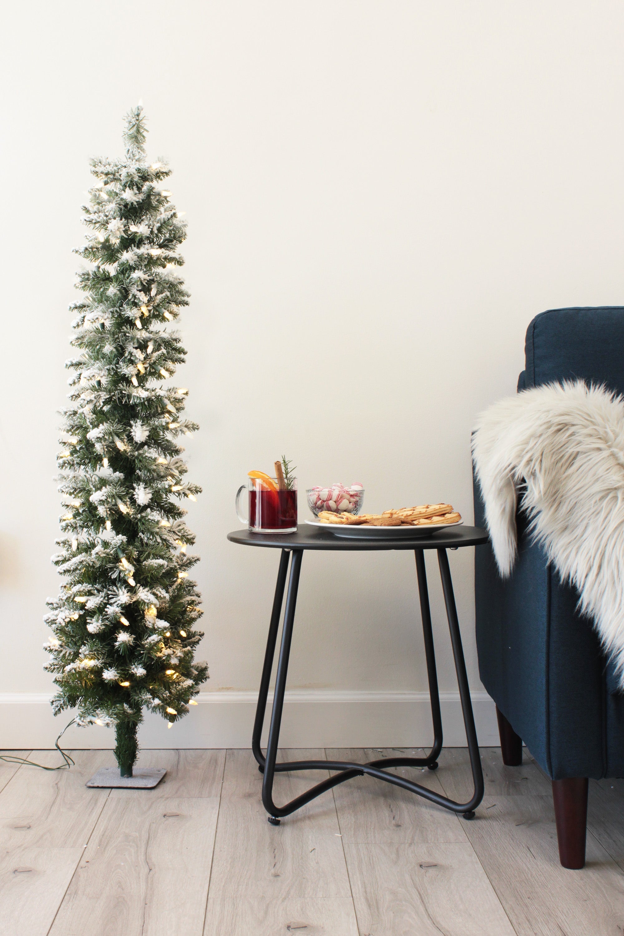 Prelit Flocked Pencil Tree