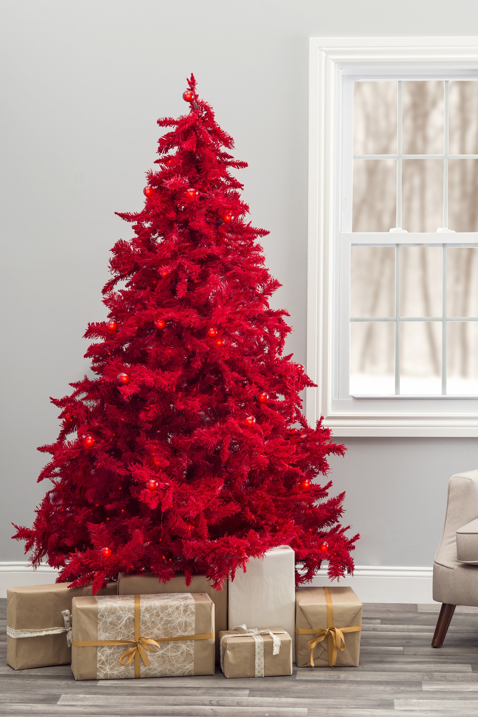 Prelit Ruby Red Christmas Tree with Small & Large Lights