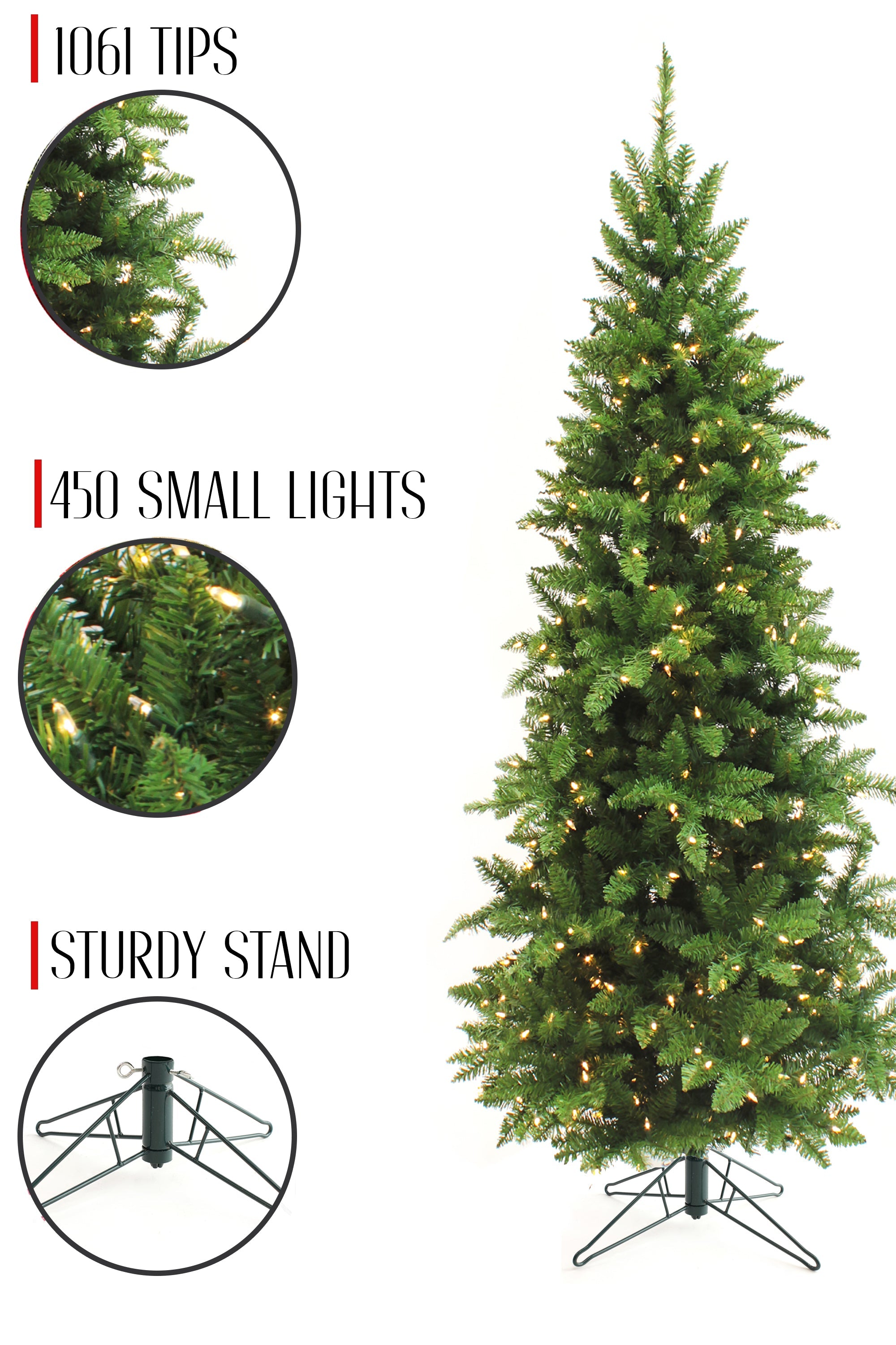 Prelit Slim Pencil Spruce Christmas Tree with Warm White Lights