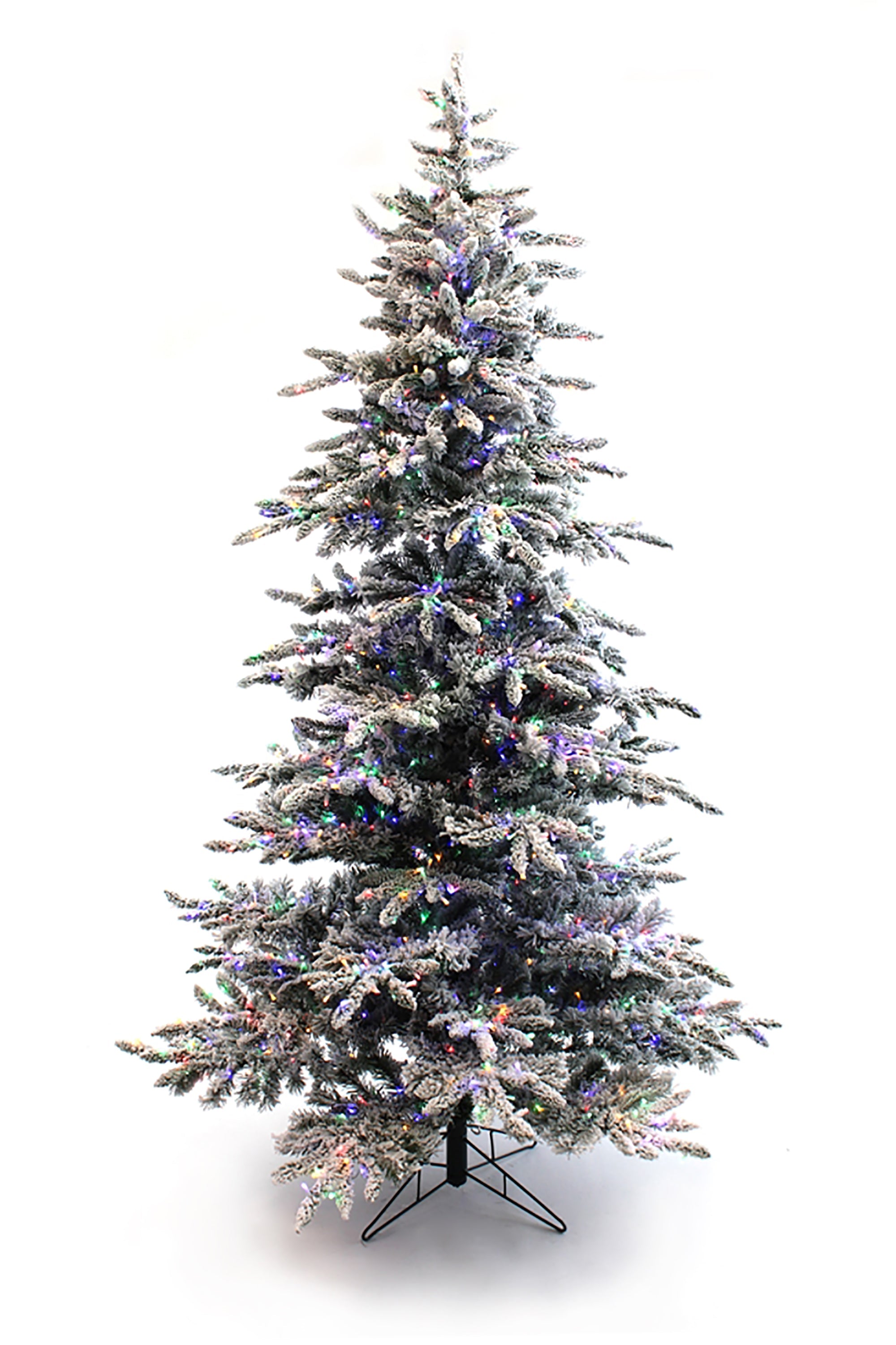 Prelit Slim Snow Flocked Christmas Tree with Warm White & Multicolor Lights