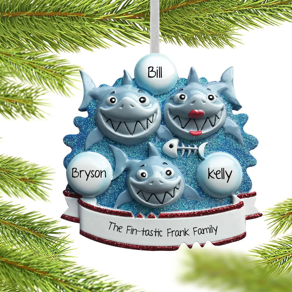 Shark Family Personalization Ornament - 3, 4, 5 Family Members