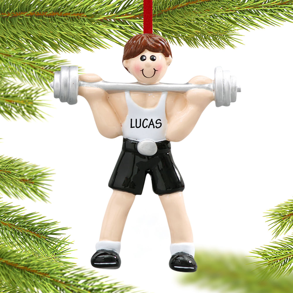 Weightlifter Personalized Male Holding A Barbell Personalized Ornament