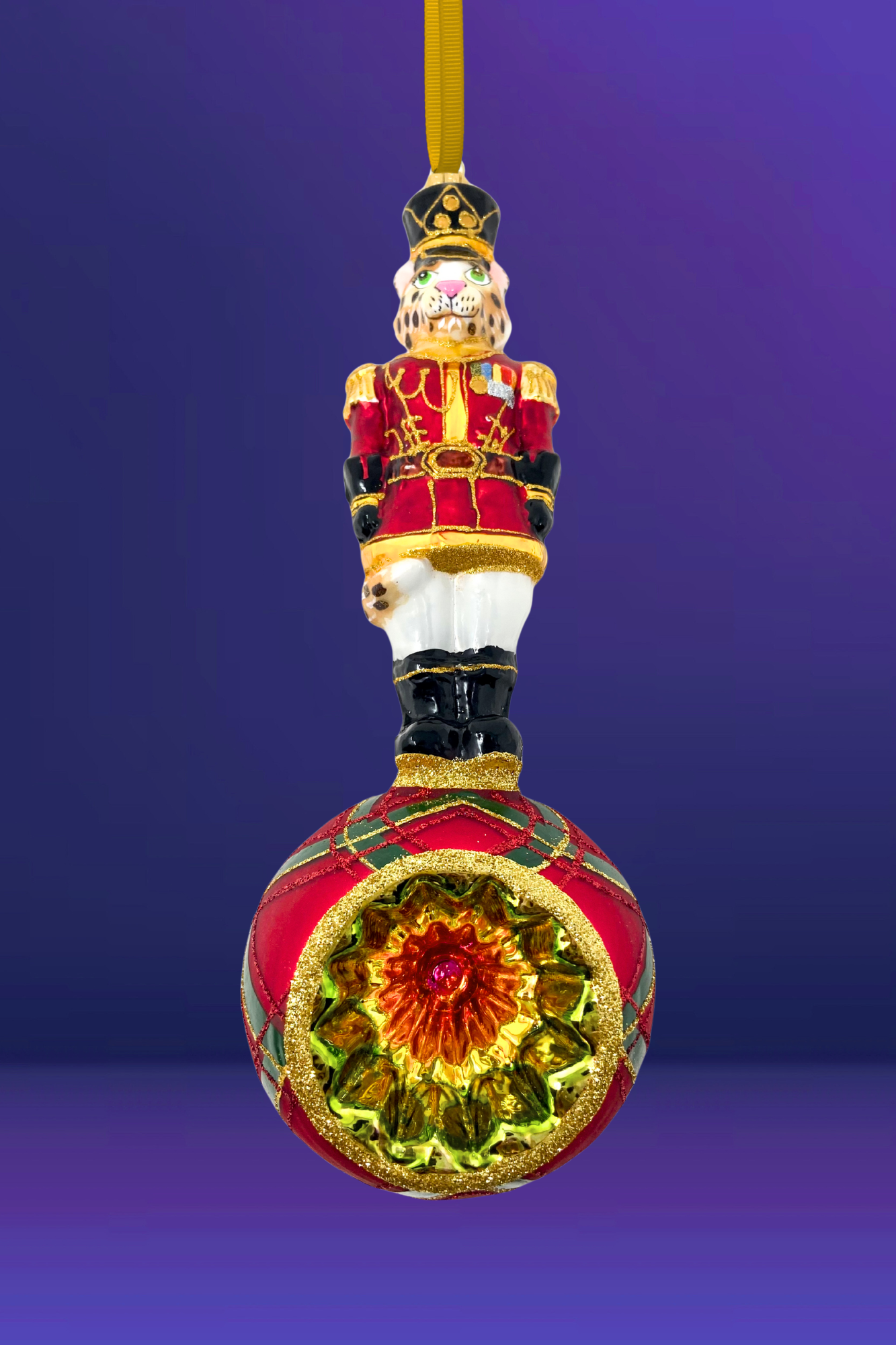 This feline general is suited up in full dress regalia—epaulettes, medals, and a reflector orb base—standing tall to protect the season’s sparkle with a feline smirk.